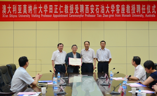 6月30日下午,澳大利亞莫納什大學田正仁教授客座教授聘任儀式暨學術交流會在我校會議中心第一會議室舉行。校黨委書記賽云秀、副校長李天太出席聘任儀式。石油工程學院院長周德勝教授主持儀式。