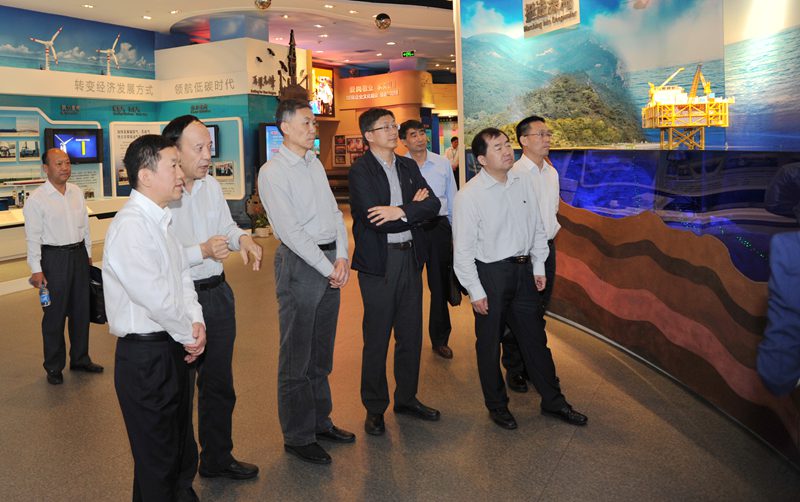 會(huì)見(jiàn)前,在中國(guó)海油有關(guān)領(lǐng)導(dǎo)的陪同下,賽書(shū)記、屈校長(zhǎng)一行參觀了中國(guó)海洋石油工業(yè)展覽館。