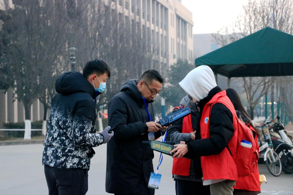 12月23日,校長王進(jìn)富、副校長楊戰(zhàn)社在考試現(xiàn)場調(diào)度組考工作,實(shí)地查看考生入場秩序、考務(wù)組織等情況,認(rèn)真檢查了各考場情況、監(jiān)考教師履職、考生紀(jì)律等。檢查過程中,看望慰問了考務(wù)人員、屬地公安和醫(yī)療保障力量、學(xué)生志愿者,對大家的辛勤付出表示感謝。