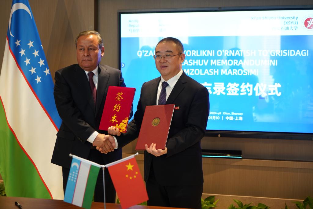 1月10日下午,校黨委書記常江在上海與來華訪問的烏茲別克斯坦安集延州州長阿卜杜拉赫馬諾夫·舒赫拉特貝克·科沙克博耶維奇(Abdurahmanov Shuhratbek Koshaqboevich)一行會見,并簽署合作備忘錄。烏茲別克斯坦安集延州州政府、波士頓區(qū)政府、烏茲別克斯坦駐華大使館投資工業(yè)與貿易部、商務參贊等烏方官員,以及我校國際交流與合作處、石油工程學院、地球科學與工程學院、化學化工學院、經(jīng)濟管理學院、國際教育學院等部門和學院負責人參加會見。