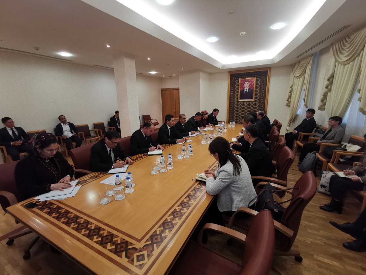 在土庫曼斯坦教育部,教育部副部長阿塔耶夫?阿扎特?穆哈梅多維奇與教育部國際司、高等教育與職業(yè)教育司、科技司司長共同會見了代表團,卡卡耶夫國際油氣大學教學副校長瑪梅多夫、科研副校長阿曼尼亞佐夫陪同會談。張榮軍介紹了與卡卡耶夫國際油氣大學就“魯班工坊”項目洽談情況,重點就“魯班工坊”建設的重要意義及項目名稱的重要性進行了說明,就“魯班工坊”建設中需土國教育部協(xié)調(diào)推進的事項進行了闡述,并代表陜西省教育廳就師生赴土交流事宜進行了討論。穆哈梅多維奇對代表團的到訪表示歡迎,重申了建設“魯班工坊”是落實中土兩國元首達成的重要共識,希望雙方合作院校充分交流協(xié)商,加快“魯班工坊”建設,加強與中資企業(yè)密切合作,不斷促進土庫曼斯坦青年就業(yè)和國民經(jīng)濟發(fā)展;同時,阿塔耶夫對代表團關心的問題進行了解答,并表示將積極推進“魯班工坊”建設事宜。