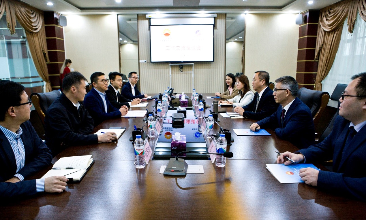與卡卡耶夫國際油氣大學校長阿塔馬諾夫等負責人座談