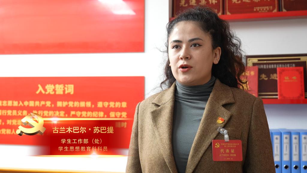 報告提出,加強新形勢下民族宗教工作,堅決抵御和防范校園傳教滲透?!皥蟾娓用鞔_了我校民族宗教工作的方向和重點。在新時代背景下,要始終堅持黨的民族宗教政策,深化民族團結進步教育,把鑄牢中華民族共同體意識貫穿于教育教學全過程?!鄙贁?shù)民族代表、學生工作部(處)學生思想教育科科員古蘭木巴爾?蘇巴提說,“可以通過豐富多彩的文化交流活動,鼓勵和支持少數(shù)民族學生發(fā)揮自身優(yōu)勢,展現(xiàn)民族文化魅力,提升自我價值,讓民族團結的種子在學生心中生根發(fā)芽?!?/p>