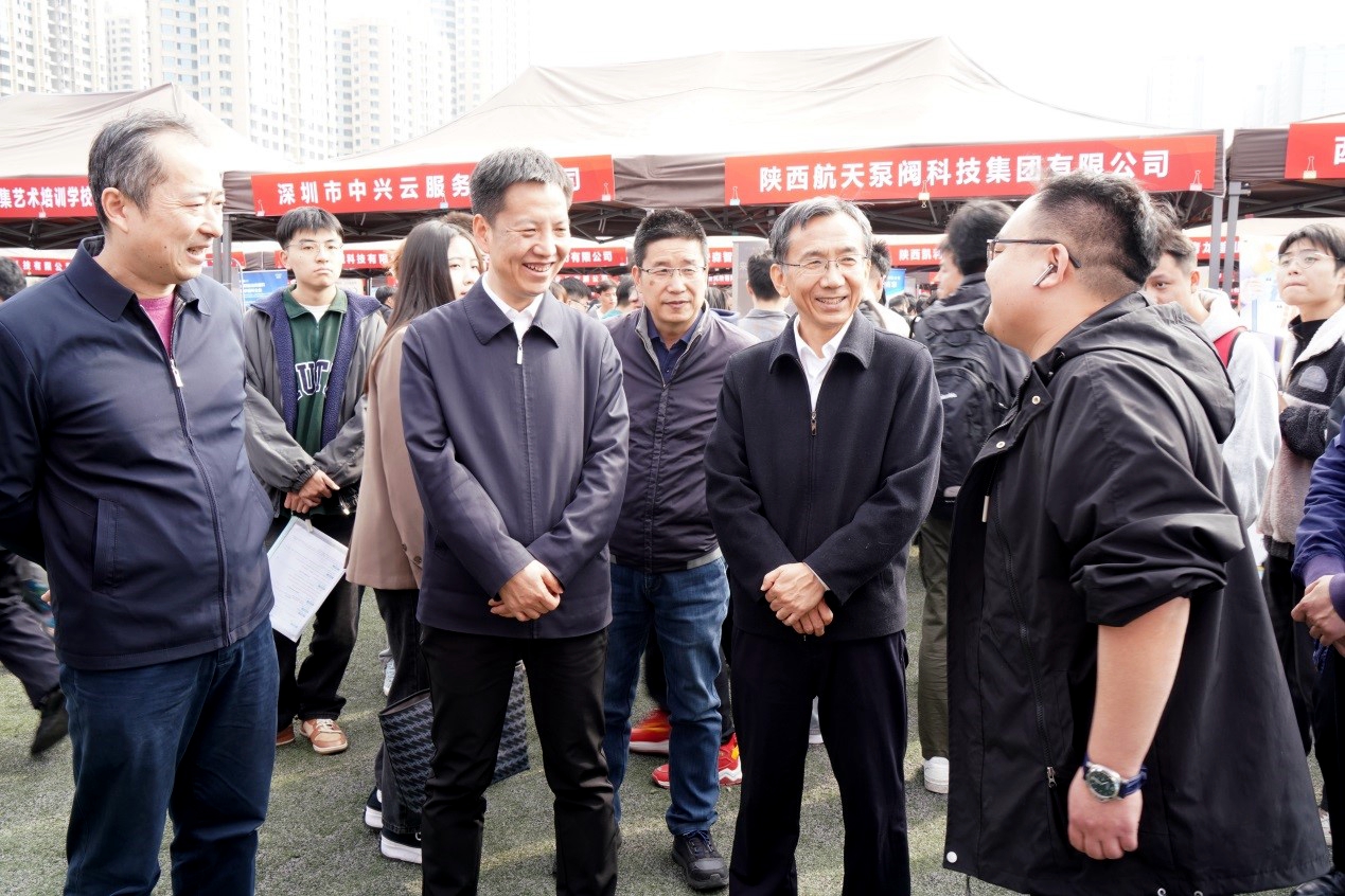 申雪峰一行深入招聘會現(xiàn)場,認(rèn)真聽取了我校關(guān)于招聘會籌備、現(xiàn)場組織、安保以及會議服務(wù)的情況匯報,了解了企業(yè)招聘需求,現(xiàn)場與畢業(yè)生、二級院(系)學(xué)生工作主要負(fù)責(zé)人、我校就業(yè)工作負(fù)責(zé)人、現(xiàn)場推介畢業(yè)生的專任教師及畢業(yè)班輔導(dǎo)員進(jìn)行了交流。他鼓勵畢業(yè)生要志存高遠(yuǎn),積極進(jìn)取,腳踏實(shí)地,將個人理想追求融入國家社會發(fā)展需要中去。建議用人單位要不拘一格降人才,既要承擔(dān)好企業(yè)的社會責(zé)任,為畢業(yè)生創(chuàng)造好事業(yè)發(fā)展空間,又要加強(qiáng)校企合作,把企業(yè)人才需求和質(zhì)量及時反饋到學(xué)校的人才培養(yǎng)過程中去,破解結(jié)構(gòu)性矛盾,提升人才培養(yǎng)質(zhì)量,促進(jìn)供需對接平衡。并就高校做好畢業(yè)生就業(yè)工作提出幾點(diǎn)建議:一是要千方百計(jì)促進(jìn)市場化就業(yè),深入開展訪企拓崗促就業(yè)行動;二是要健全就業(yè)服務(wù)體系,強(qiáng)化就業(yè)育人實(shí)效,深入推進(jìn)就業(yè)育人,切實(shí)維護(hù)畢業(yè)生就業(yè)權(quán)益;三是要聚焦重點(diǎn)群體,健全就業(yè)幫扶機(jī)制,用心用情做好就業(yè)困難群體幫扶。