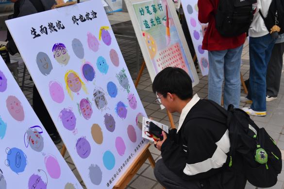 心理協(xié)會組織的“以德育心”展臺主題為“尋找缺失的一角”,引導(dǎo)同學(xué)們發(fā)掘優(yōu)勢,探索目標(biāo),找準(zhǔn)個人發(fā)展方向;“以美潤心”展臺主題為“眾人涂鴉”和“詩歌拼貼”,同學(xué)們通過活動打破性別刻板印象,在創(chuàng)造中展示個人風(fēng)采。
