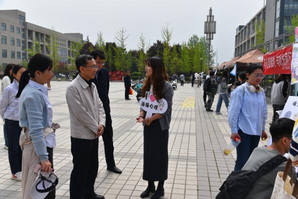 活動現(xiàn)場,張木親臨每個展臺,并與學(xué)生們交流了生活、學(xué)習(xí)、人際交往的感受,向院(系)心理專干和班級心理委員了解了“一院一品”創(chuàng)意與日常工作中的困難,在各展臺詢問了每項(xiàng)活動的心理意義,并參與體驗(yàn)了一些項(xiàng)目,對此次“油緣會”戶外體驗(yàn)活動給予了充分肯定,并鼓勵多舉辦師生喜聞樂見的心理育人實(shí)踐活動。