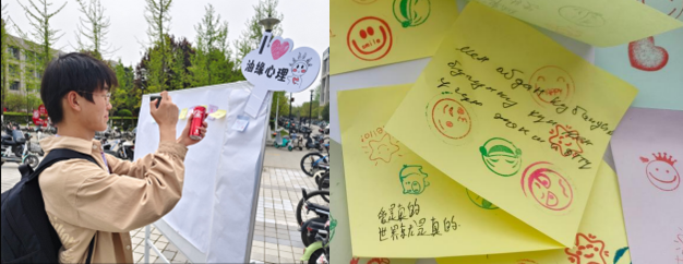 地球科學(xué)與工程學(xué)院、電子工程學(xué)院組織的“以德育心”展臺主題分別為“妙筆騫行”和“時光膠囊”,讓同學(xué)們在活動中體驗(yàn)情緒、認(rèn)知自我,直面時光流逝,學(xué)會珍惜時間。
