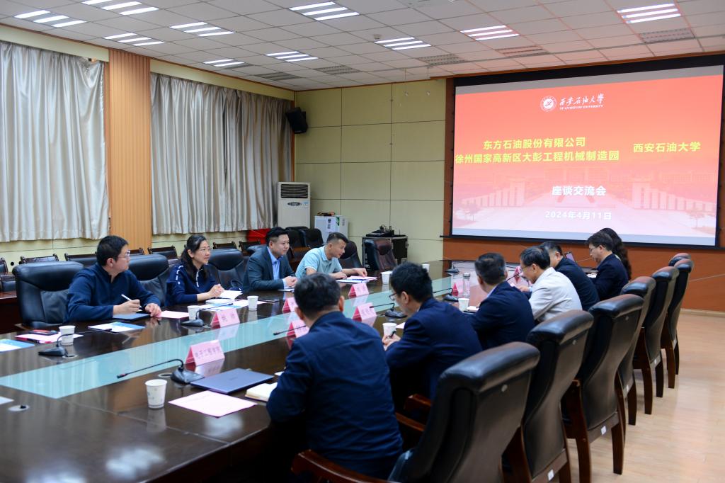 4月11日,由東方石油股份有限公司董事長(zhǎng)、總經(jīng)理劉浩,徐州國(guó)家高新區(qū)大彭工程機(jī)械制造園分管負(fù)責(zé)人、大彭鎮(zhèn)黨委委員、副鎮(zhèn)長(zhǎng)尹靜靜一行來校進(jìn)行政、企、校合作交流。交流會(huì)在雁塔校區(qū)西階第一會(huì)議室舉行,學(xué)校黨委副書記張木出席會(huì)議,合作發(fā)展處處長(zhǎng)覃彪長(zhǎng)主持了會(huì)議。