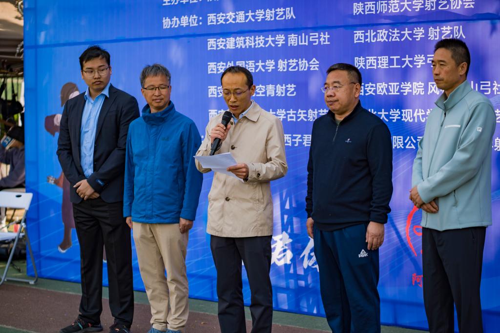 張君濤在致辭中對所有參賽選手表示誠摯的歡迎和良好的祝愿,向大賽組委會對我校體育競賽組織能力和服務保障能力的肯定與認可表示感謝。張君濤指出,體育活動是學生生活的重要組成部分,射藝和射箭作為中華傳統(tǒng)體育項目的重要組成部分,不僅對增強學生體質、提升集中力和意志力有著不可替代的作用,也是培養(yǎng)學生毅力、精準度和策略思維的絕佳平臺。此次承辦全省射箭、射藝大賽,不僅為大學生提供了一個展示自我、競技拼搏的平臺,也將進一步推動射藝運動在校園的普及與發(fā)展。西安石油大學將繼續(xù)發(fā)揮自身優(yōu)勢,為陜西省大學生體育事業(yè)作出更大貢獻。