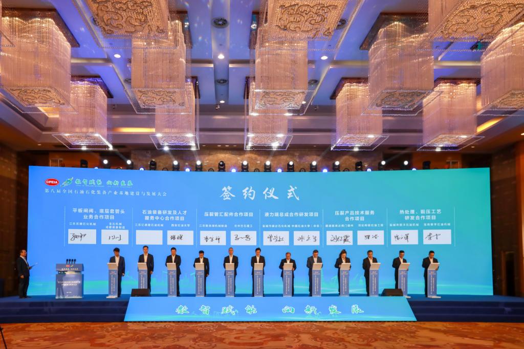 建湖是全國(guó)唯一縣級(jí)“國(guó)字號(hào)”石油石化裝備制造基地,石油裝備產(chǎn)業(yè)經(jīng)過40多年發(fā)展,目前已形成從上游到終端、井上到井下、陸上到海上、生產(chǎn)到服務(wù)的全產(chǎn)業(yè)鏈條,全縣共有石油機(jī)械制造企業(yè)1100多家。學(xué)校深度融入建湖縣石油石化裝備制造研發(fā)和人才培養(yǎng)環(huán)節(jié),政、企、校三方長(zhǎng)期保持密切聯(lián)系,是國(guó)家石油機(jī)械產(chǎn)品質(zhì)量檢驗(yàn)檢測(cè)中心(江蘇)的長(zhǎng)期合作伙伴,在服務(wù)國(guó)家能源戰(zhàn)略過程中作出了積極貢獻(xiàn)。近年來,建湖通過設(shè)備更新、技改升級(jí)、數(shù)字賦能等措施,推動(dòng)石油裝備制造向“高”攀登、向“新”發(fā)力,此次大會(huì)上,建湖共簽約38個(gè)重大項(xiàng)目,其中包括我校簽訂的校企聯(lián)合共建石油裝備研發(fā)及人才服務(wù)中心項(xiàng)目。