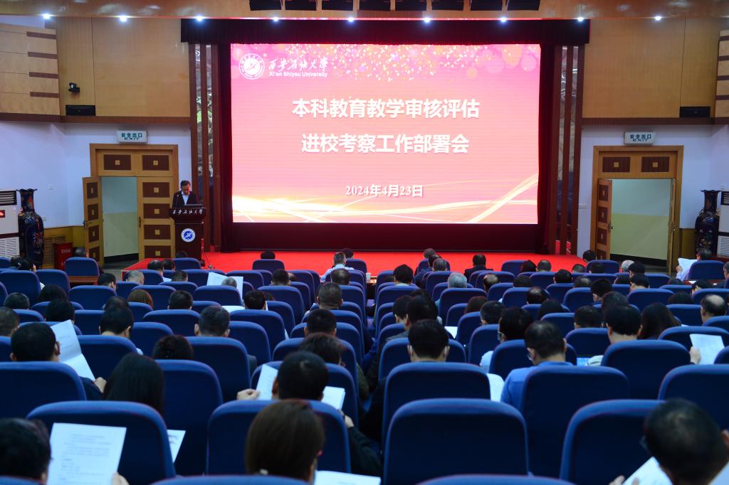 為做好2024年4月29日開始的本科教育教學(xué)審核評(píng)估進(jìn)校評(píng)估考察工作,4月23日上午,學(xué)校在雁塔校區(qū)會(huì)議中心學(xué)術(shù)報(bào)告廳召開本科教育教學(xué)審核評(píng)估進(jìn)??疾旃ぷ鞑渴饡?huì)。全體校領(lǐng)導(dǎo),校本科教學(xué)督導(dǎo)組組長(zhǎng)、副組長(zhǎng),全體處級(jí)干部參加了會(huì)議。會(huì)議由校黨委副書記張木主持。