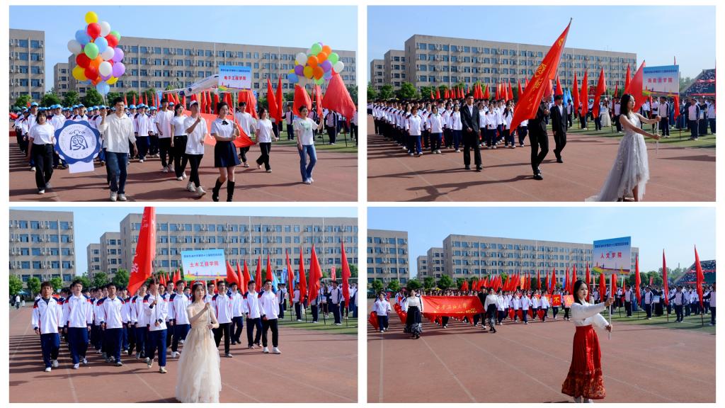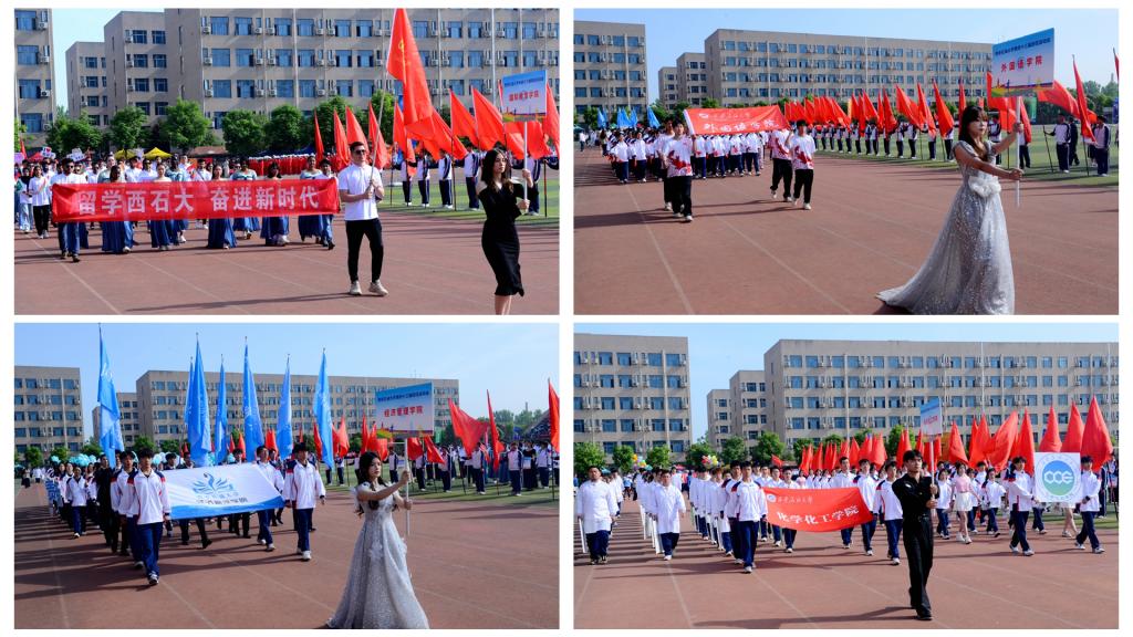 上午8點(diǎn)30分,伴隨著《運(yùn)動(dòng)員進(jìn)行曲》的旋律,國(guó)旗、校旗、會(huì)旗方隊(duì),裁判員方隊(duì)和16支院(系)參賽代表隊(duì)組成的方陣,以精彩創(chuàng)意的隊(duì)列方式依次入場(chǎng),有序通過(guò)主席臺(tái)接受檢閱,贏得全場(chǎng)觀眾熱烈的掌聲和歡呼聲。入場(chǎng)儀式上,全體師生精神抖擻、朝氣昂揚(yáng),嘹亮的口號(hào)、矯健的步伐,彰顯了西石大人積極向上、拼搏進(jìn)取的精神面貌以及勇?lián)聲r(shí)代責(zé)任和使命的拳拳決心??谔?hào)聲、歡呼聲響徹運(yùn)動(dòng)場(chǎng)的上空。