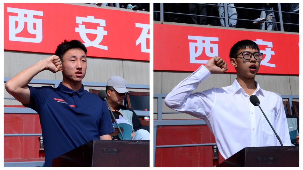 體育學(xué)院教師崔曜川、學(xué)生代表劉思宇分別代表裁判員和運(yùn)動(dòng)員宣誓。