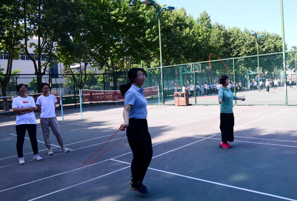 本屆教職工運(yùn)動會共設(shè)有跳遠(yuǎn)、背拋實(shí)心球、足球運(yùn)球射門、籃球自投自撿、1分鐘跳繩、摸石頭過河等個(gè)人項(xiàng)目23項(xiàng),4×100米接力、4×400米接力、集體2分鐘跳大繩、20人集體挽臂跑、20人30米迎面接力、袋鼠跳接力等集體項(xiàng)目7項(xiàng),全校25個(gè)部門工會、600余名運(yùn)動員參加,形成了全校教職工廣泛參與、全民健身的良好氛圍。