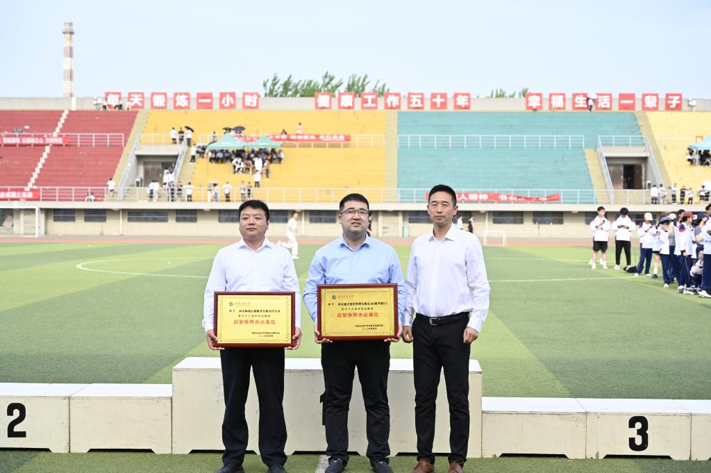 閉幕式上,張木為獲得體育道德風(fēng)尚獎和男女團(tuán)體前三名的單位頒獎,張君濤為獲得團(tuán)體總分前六名的單位頒獎。體育學(xué)院負(fù)責(zé)人為獲得后勤保障杰出貢獻(xiàn)獎的西安德青餐飲公司和西安師苑公司頒獎。