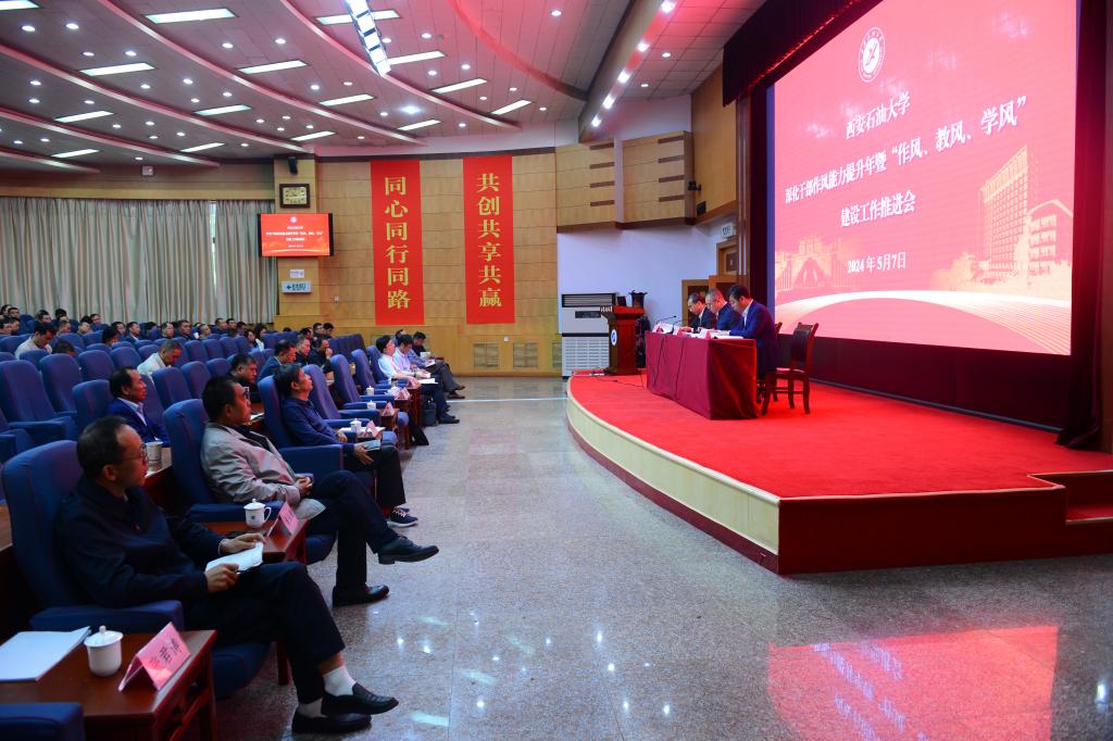 會(huì)上,校黨委副書(shū)記、校長(zhǎng)王進(jìn)富解讀了《中共西安石油大學(xué)委員會(huì)深化干部作風(fēng)能力提升年暨“作風(fēng)、教風(fēng)、學(xué)風(fēng)”建設(shè)工作實(shí)施方案》,安排部署了學(xué)校深化干部作風(fēng)能力提升年和“作風(fēng)、教風(fēng)、學(xué)風(fēng)”建設(shè)工作。他指出此次工作要圍繞學(xué)校學(xué)科專業(yè)建設(shè)、人才培養(yǎng)、科學(xué)研究等重點(diǎn)工作,不斷強(qiáng)化“作風(fēng)、教風(fēng)、學(xué)風(fēng)”建設(shè),緊盯干部作風(fēng)能力方面存在的短板弱項(xiàng),堅(jiān)持黨性黨風(fēng)黨紀(jì)一起抓,扎實(shí)推進(jìn)37項(xiàng)工作舉措,實(shí)現(xiàn)錘煉過(guò)硬作風(fēng)、弘揚(yáng)嚴(yán)謹(jǐn)教風(fēng)、鞏固扎實(shí)學(xué)風(fēng)三個(gè)目標(biāo)。他強(qiáng)調(diào)各牽頭單位要切實(shí)扛起責(zé)任,加強(qiáng)統(tǒng)籌協(xié)調(diào),分解落實(shí)工作任務(wù),明確工作措施、職責(zé)分工和完成時(shí)限,逐條逐項(xiàng)推進(jìn)落實(shí);各配合單位要按照職責(zé)分工,積極主動(dòng)配合,認(rèn)真完成好承擔(dān)的工作任務(wù)。他要求全校各單位要認(rèn)真履行主體責(zé)任,優(yōu)化工作機(jī)制,充實(shí)人員力量,將相關(guān)任務(wù)系統(tǒng)分解成可操作、可量化、可落實(shí)的具體措施,實(shí)行清單化管理、項(xiàng)目化推進(jìn)。各院(系)級(jí)單位黨組織書(shū)記、各單位主要負(fù)責(zé)人要扛起第一責(zé)任人責(zé)任,親自謀劃、靠前指揮,整體把握推進(jìn),及時(shí)掌握新情況、解決新問(wèn)題,將建設(shè)工作抓緊抓好抓出成效,牽引學(xué)校高質(zhì)量發(fā)展實(shí)現(xiàn)新突破。