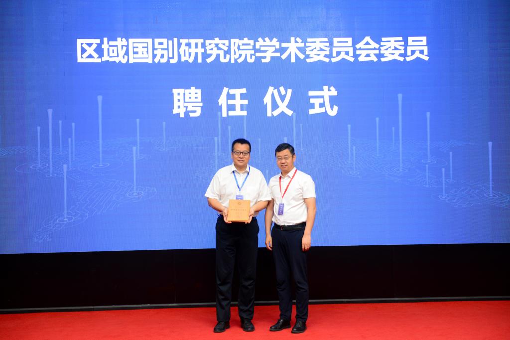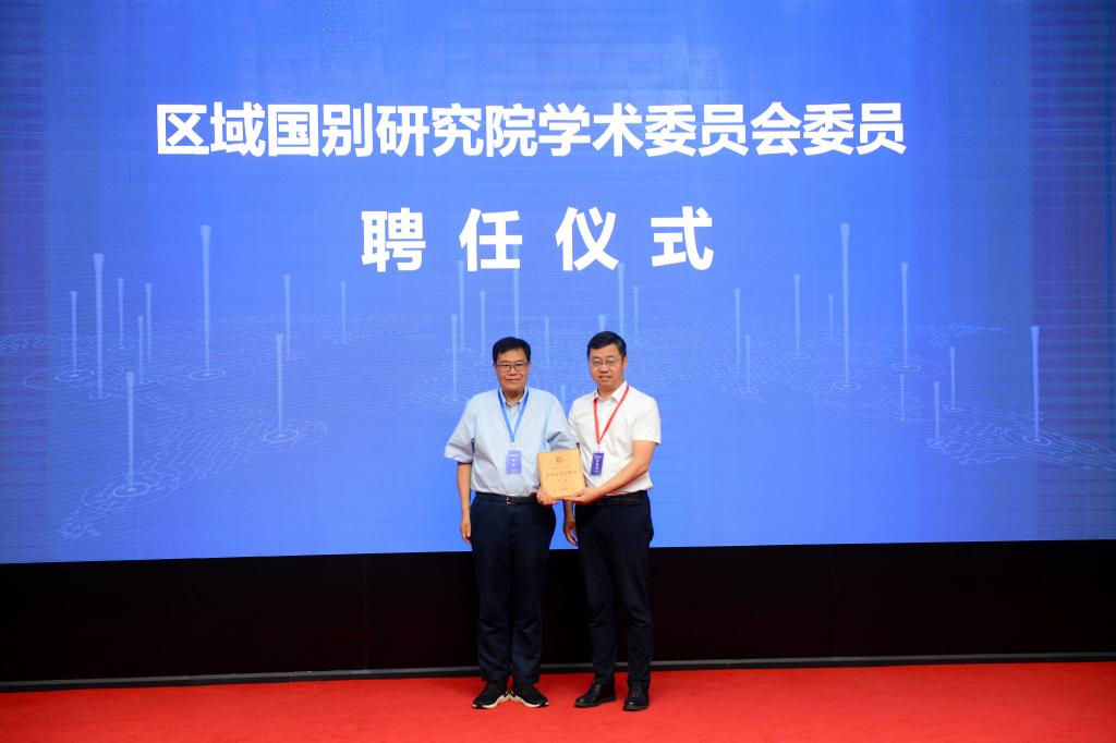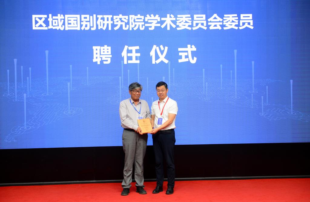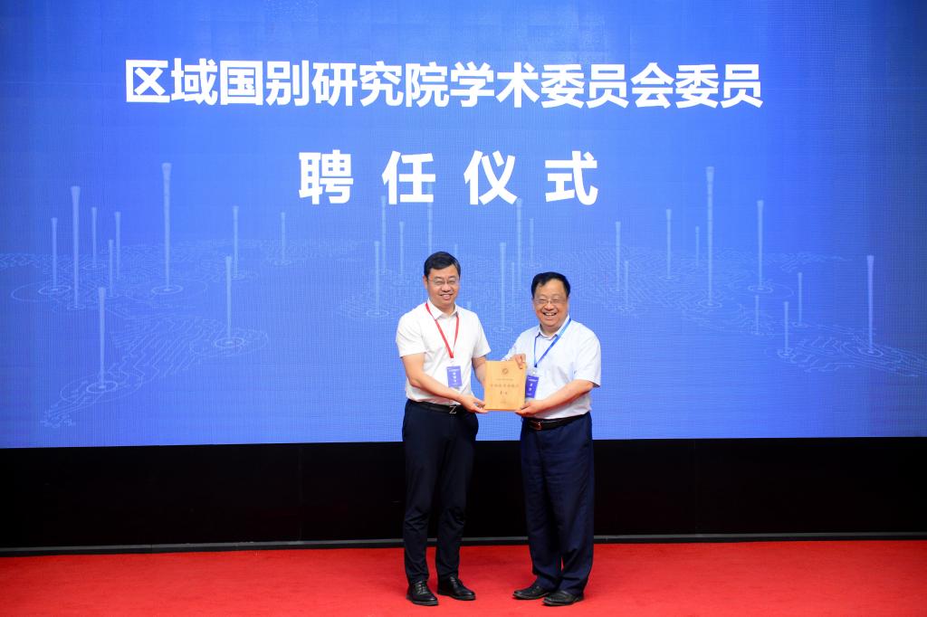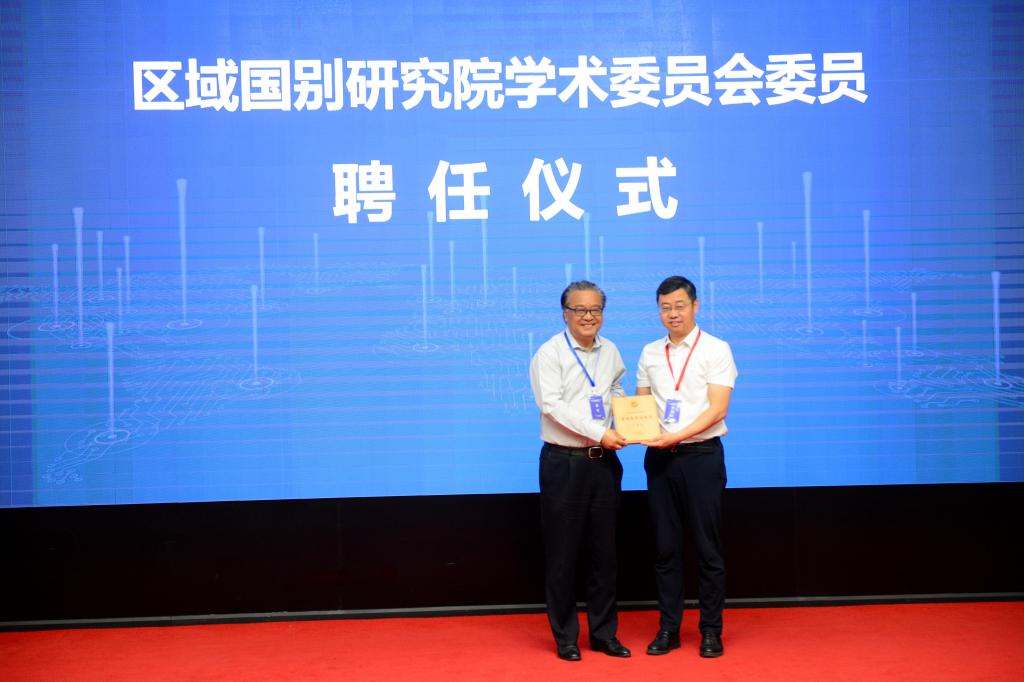 王進富為柯銀斌教授頒發(fā)研究院第一屆學術委員會委員聘書