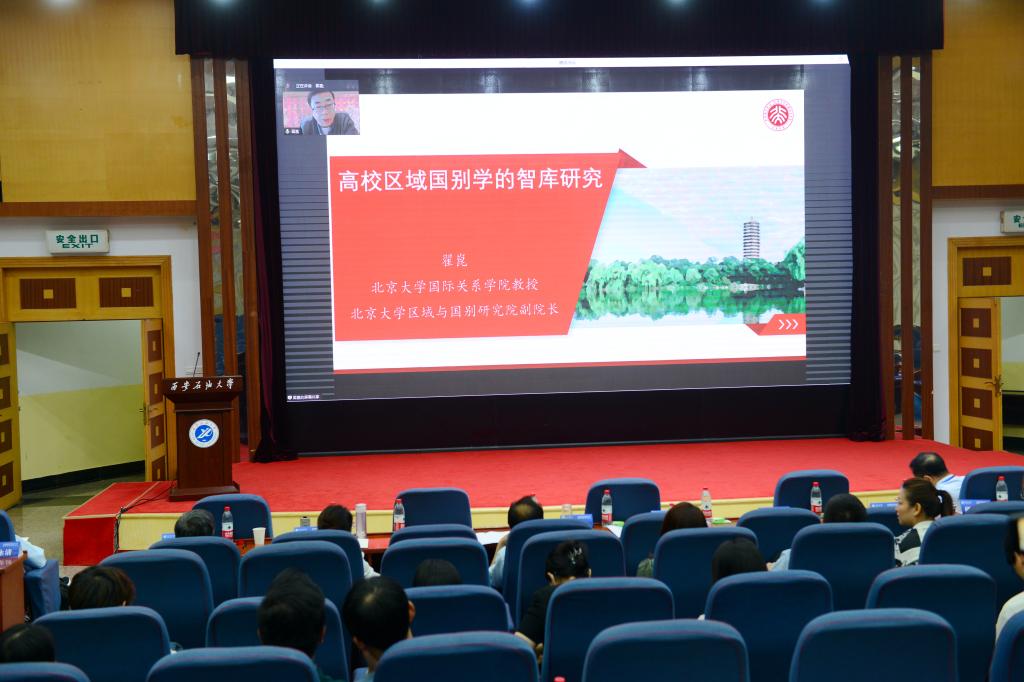 陜西省社會科學院副院長王建康,陜西省委宣傳部對外宣傳處處長王戰(zhàn)軍,陜西省教育廳科技處處長朱曉冬,陜西省文化和旅游廳一級調研員尹為民,陜西省社科聯(lián)社會組織管理部部長張金高,中國石油集團經(jīng)濟技術研究院院長陸如泉教授,北京語言大學國別和區(qū)域研究院院長羅林教授,北京大學區(qū)域與國別研究院副院長翟崑教授,武漢大學中法非三方合作聯(lián)盟副主席王戰(zhàn)教授,察哈爾學會學術委員會副主任柯銀斌教授,中國社會科學院西亞非洲研究所政治研究室主任唐志超教授,西北大學社科處處長韓志斌教授,西北大學王新剛教授線下或線上參會。我校黨政領導常江、王進富、張榮軍、張君濤出席大會。我校相關院(系)和職能部門主要負責人、教師代表和學生代表共300余人參加大會。研究院成立大會和學科建設研討會—區(qū)域國別研究特邀報告環(huán)節(jié)分別由我校副校長程永清、楊戰(zhàn)社主持。