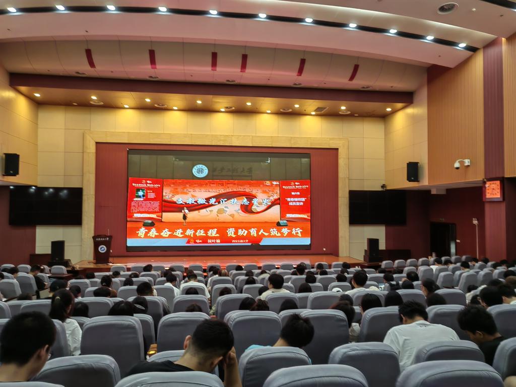 我校黨委副書記張木帶隊赴西安工程大學臨潼校區(qū)參加主會場活動,學生工作部(處)副部(處)長畢軼慧,財務處副處長秦秋菊等人員陪同。我校在雁塔校區(qū)第五會議室和鄠邑校區(qū)弘石學術報告廳設立了分會場,宣傳部部長趙承勝、研究生工作部部長李強及財務處、研究生工作部、學生資助管理中心的老師參加了分會場的活動,共計550余名學生在分會場觀看了現(xiàn)場直播。