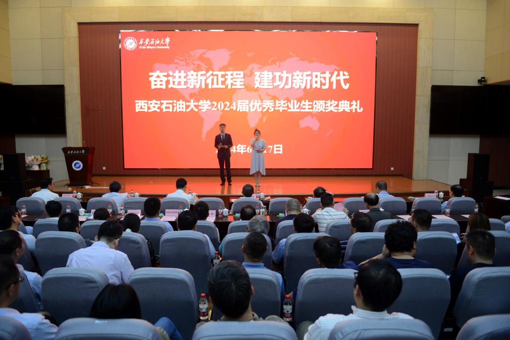 6月17日下午,西安石油大學2024屆優(yōu)秀畢業(yè)生頒獎典禮在鄠邑校區(qū)弘石學術(shù)報告廳舉辦。學校黨政領(lǐng)導常江、王進富、張木、楊戰(zhàn)社、張榮軍出席頒獎典禮,黨委辦公室(校長辦公室)、黨委組織部、黨委宣傳部、黨委學生工作部、黨委保衛(wèi)部、團委、教務(wù)處、實驗室管理處、研究生院(研究生工作部)、國際教育學院負責人,各院(系)書記、院長(主任)、副書記,全體輔導員及學生代表400余人參加會議。