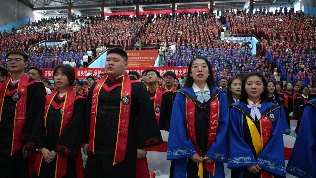 畢業(yè)典禮在莊嚴的國歌聲中拉開帷幕。