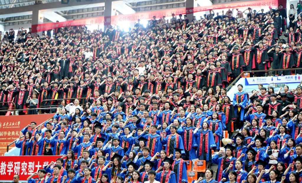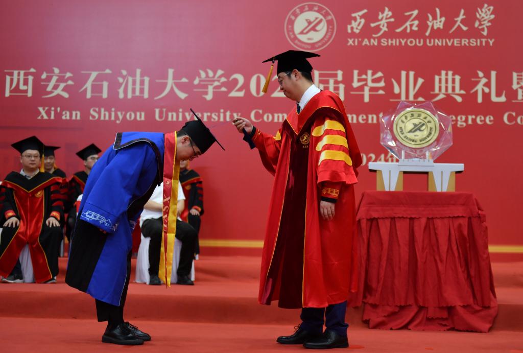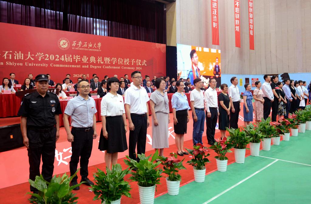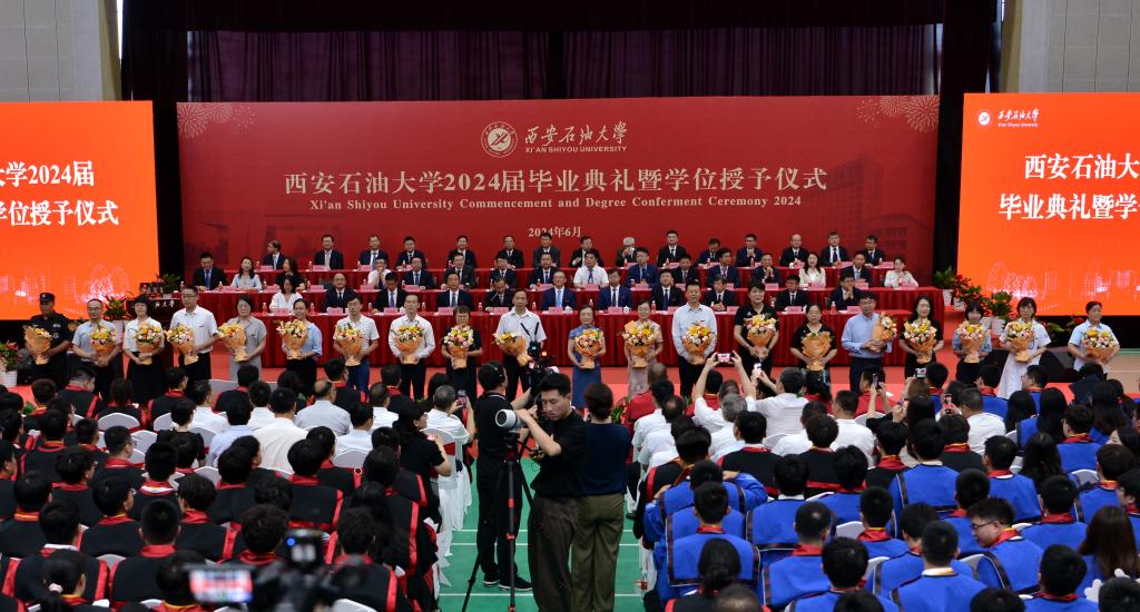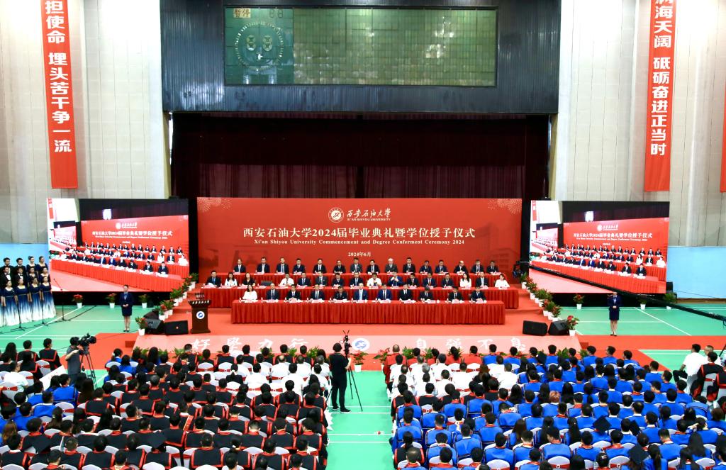 6月20日上午,西安石油大學2024屆畢業(yè)典禮暨學位授予儀式在雁塔校區(qū)體育館舉行。校黨政領(lǐng)導常江、王進富、張木、王輝強、程永清、楊戰(zhàn)社、蘇文甫、張驍勇、趙健、樊曉民出席典禮。相關(guān)職能部門、各院(系)負責人,教師代表、校友代表,2024屆畢業(yè)生及家長3000余人來到典禮現(xiàn)場,共同見證這一重要時刻。典禮由校黨委副書記張木主持。