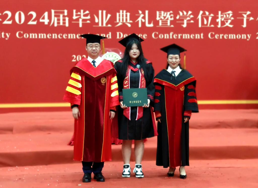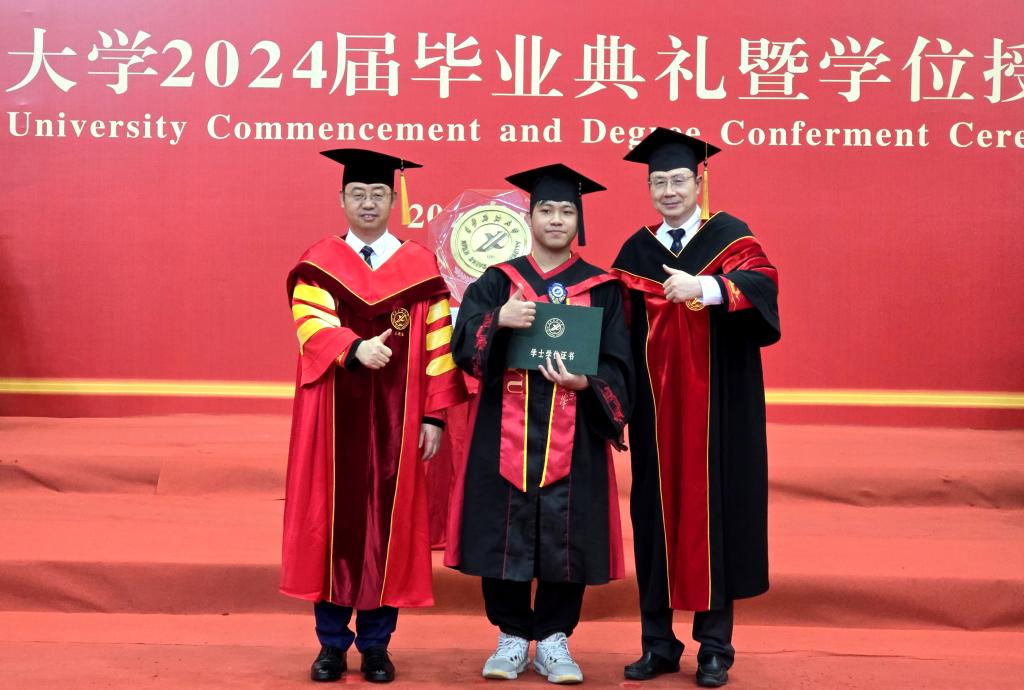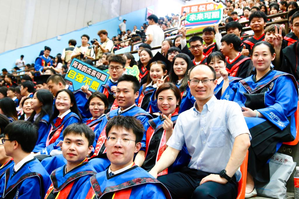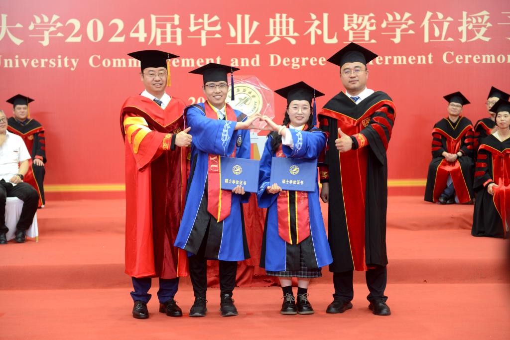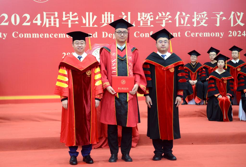 王進富校長在校學位評定委員會委員的見證下為到場的本科、碩士和博士畢業(yè)生撥穗、授予學位,并合影留念。