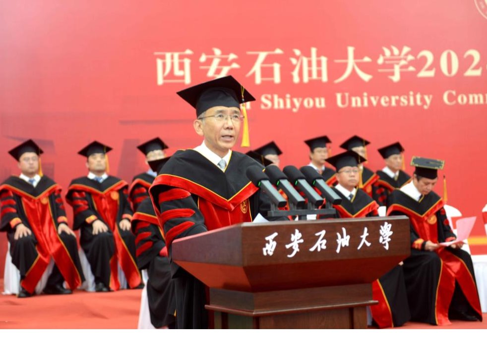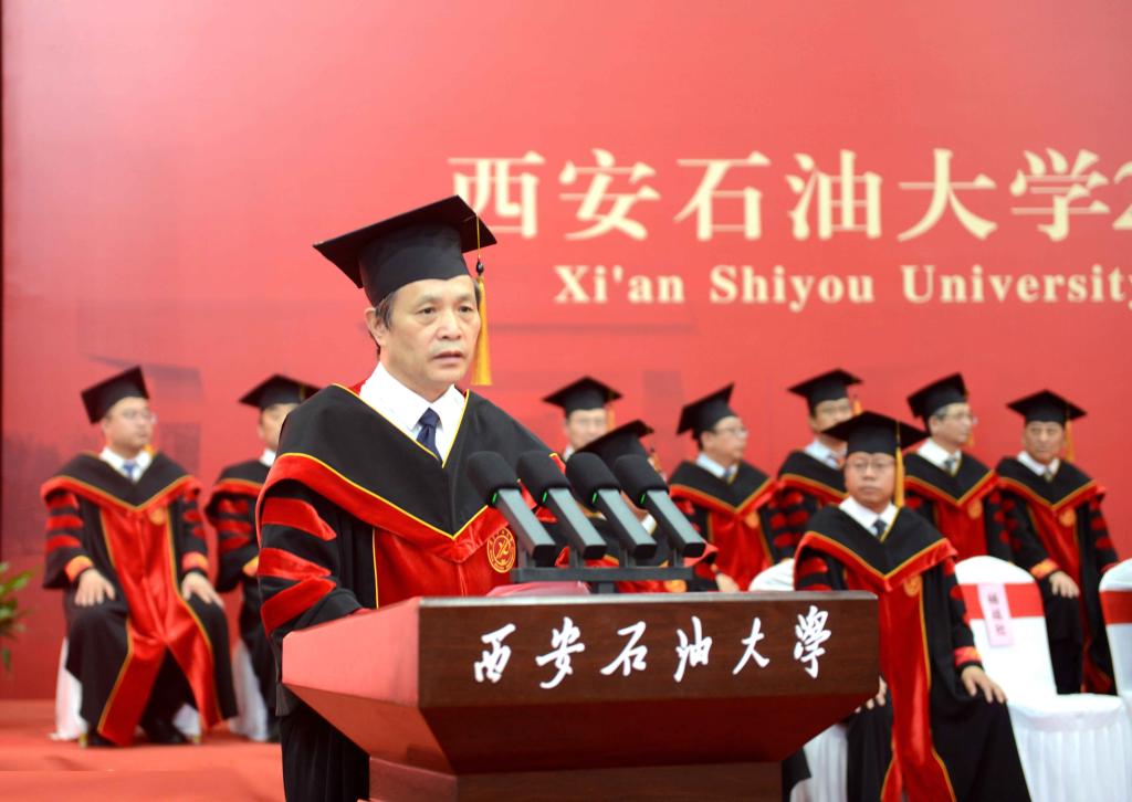 校長王進富為2024屆畢業(yè)生致辭。他代表學校用這場隆重的畢業(yè)典禮、精心設(shè)計的專屬學位服,向2024屆5705名圓滿完成學業(yè)、取得學位的優(yōu)秀學子表達愛與祝福、感謝與期待;向春風化雨、寸草春暉的老師、父母們以及18萬校友們表示最衷心的感謝和最崇高的敬意。王進富以《遠觀、問道、登頂》為題,囑托勉勵畢業(yè)生:一是作為新時代青年,要用開闊的視野遠觀偉大的征程,用新時代的歷史方位調(diào)整自己的人生航向,披荊斬棘、乘風破浪。在偉大的時代堅定奮斗的信念,在實踐鍛造中不斷增強做中國人的志氣、骨氣和底氣,不畏艱難,無畏風雨,用“我為祖國獻石油”的錚錚誓言為人生定義,在青春的賽道上創(chuàng)造無愧于黨、無愧于人民、無愧于時代的新業(yè)績;二是新征程上,要追尋求是之道,善于運用馬克思主義的顯微鏡和望遠鏡觀察社會、觀察世界,認真研究事物內(nèi)在聯(lián)系,準確把握事物發(fā)展規(guī)律,撥開現(xiàn)象、察看本質(zhì),作一名洞察世事、清醒睿智的人。直面問道能源勘探開采主戰(zhàn)場,開拓能源開發(fā)利用新陣地,探索創(chuàng)新之道,以創(chuàng)新精神發(fā)現(xiàn)“好油藏”、開展“新勘探”,實現(xiàn)“真開采”,保障“優(yōu)儲運”,做到“精煉化”,為服務(wù)國家能源戰(zhàn)略貢獻西石大智慧和西石大力量。三是登頂?shù)穆飞?,要堅持不懈,做一個堅定的行動派,跑出自己的加速度,為實現(xiàn)人生理想勇敢攀登,讓青春在創(chuàng)新創(chuàng)造中閃閃發(fā)光;要追求卓越,不斷學習、不斷進步,不斷追求、不斷攀登,永葆熱愛、懷揣夢想,行而不輟、履踐致遠,努力成為更好的自己,努力建設(shè)更好的中國。最后王進富寄語廣大畢業(yè)生永葆赤誠之心,常懷感恩之心,胸藏悲憫之心,昂揚奮進之心,賡續(xù)紅色血脈,弘揚鐵人精神,望向曙光,奔向輝煌!