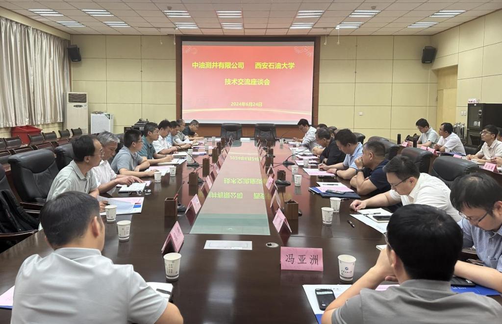 6月24日上午,中國(guó)石油集團(tuán)測(cè)井有限公司科技管理部、測(cè)井技術(shù)研究院、地質(zhì)研究院負(fù)責(zé)人及技術(shù)專家一行10人來(lái)校開(kāi)展技術(shù)交流活動(dòng)。技術(shù)交流會(huì)在雁塔校區(qū)會(huì)議中心第一會(huì)議室召開(kāi),我校黨委副書(shū)記張木出席會(huì)議??蒲刑幪庨L(zhǎng)張益主持會(huì)議。