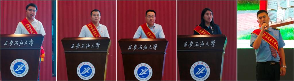 會(huì)上,我校石油工程學(xué)院2019屆本科畢業(yè)生,新疆維吾爾自治區(qū)庫車市烏尊鎮(zhèn)人民政府四級主任科員張珂;陜西職業(yè)技術(shù)學(xué)院2019屆畢業(yè)生,陜西省彬州市義門鎮(zhèn)人民政府農(nóng)業(yè)農(nóng)村辦主任任文杰;陜西工業(yè)職業(yè)技術(shù)學(xué)院2014屆畢業(yè)生,西安凌科檢測科技有限公司總經(jīng)理周春慧;陜西國防工業(yè)職業(yè)技術(shù)學(xué)院2016屆畢業(yè)生,陜西省咸陽市格林美化工程有限公司設(shè)計(jì)師劉逍雪;陜西鐵路工程職業(yè)技術(shù)學(xué)院2015屆畢業(yè)生,中國鐵路西安局集團(tuán)有限公司寶雞車務(wù)段青石崖車站站長張鑫,先后分享了他們各自建功立業(yè)的先進(jìn)事跡,并對現(xiàn)場同學(xué)們在學(xué)習(xí)、實(shí)習(xí)、就業(yè)等方面遇到的問題和疑惑進(jìn)行了交流與解答。