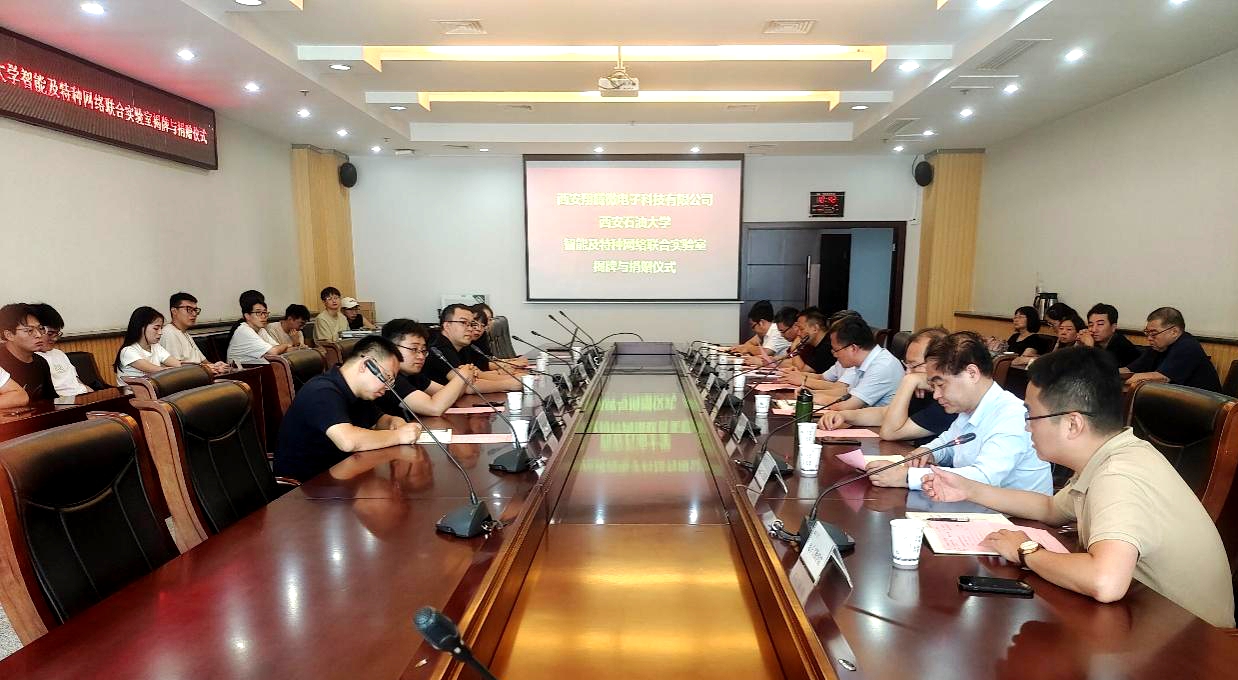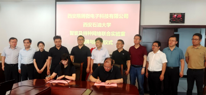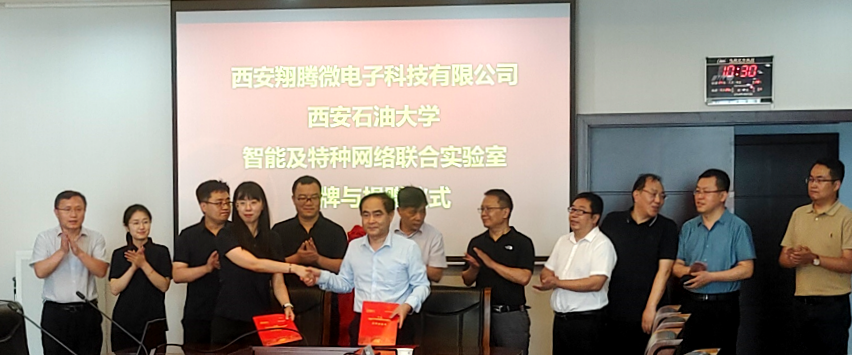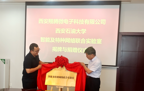 7月4日上午,西安翔騰微電子科技有限公司-西安石油大學共建“智能及特種網絡聯合實驗室”揭牌暨捐贈儀式在鄠邑校區(qū)圖書館第二會議室舉行,副校長楊戰(zhàn)社出席。西安翔騰微電子科技有限公司副總經理馬城城、人力資源部部長周靜如及相關項目負責人參加。