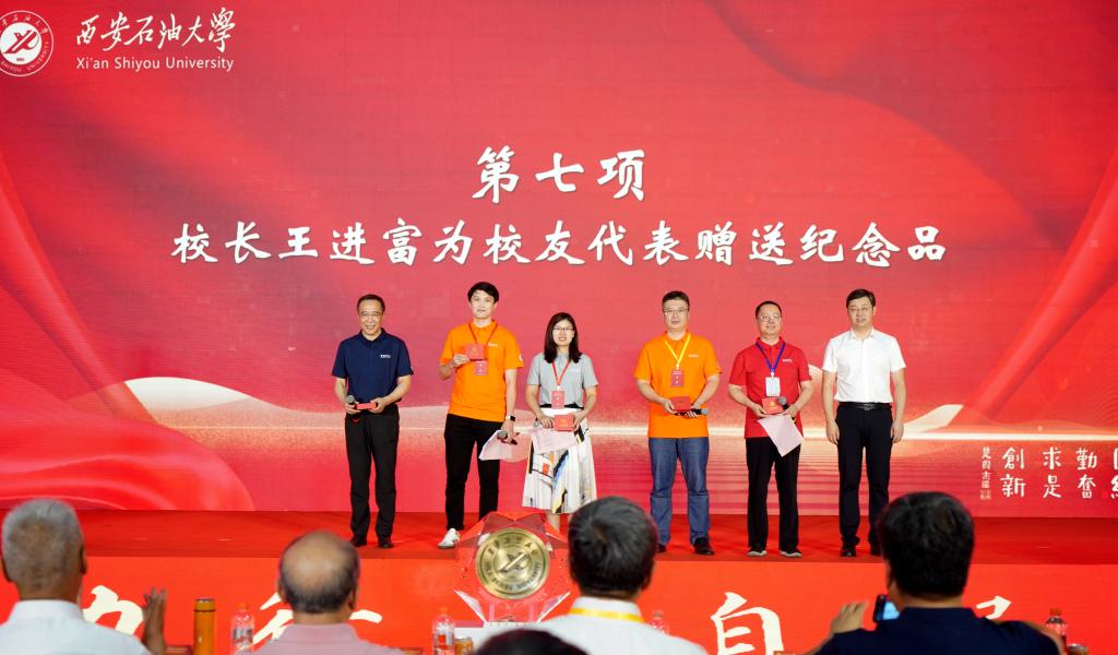 校長王進富致辭,對專程返校“回家”的校友及家屬們致以熱烈的歡迎,向長期以來關(guān)心母校發(fā)展的廣大校友表達衷心的感謝。他以《憶芳華 致青春 向未來》為題,從“歷史與傳承”“成長與記憶”“未來與期待”三個方面向校友們報告了學(xué)校的發(fā)展歷程、辦學(xué)成績和奮斗目標(biāo)。他強調(diào),學(xué)校將進一步貫徹落實第三次黨代會精神,通過六大行動全面提升人才培養(yǎng)質(zhì)量水平、推動學(xué)科發(fā)展進階升級、構(gòu)建科技創(chuàng)新服務(wù)體系、打造有競爭力人才隊伍、拓展對外合作發(fā)展格局、提升學(xué)校持續(xù)發(fā)展動能,實現(xiàn)學(xué)校高質(zhì)量發(fā)展。他表示,學(xué)校的發(fā)展離不開廣大校友的關(guān)注和支持,學(xué)校將積極為校友搭建平臺、提供資源、共享信息,以更有溫度的服務(wù)、更有深度的交流、更有力度的合作,建強校友與母校發(fā)展共同體,攜手開創(chuàng)校友個人事業(yè)和學(xué)校高質(zhì)量發(fā)展新局面。最后,他向全體校友提出倡議:一是深度互動,構(gòu)建情感共鳴、價值共同、信息共通、資源共享、發(fā)展共贏的命運共同體;二是加大支持,在重大項目實施、科技平臺建設(shè)、科研項目合作及畢業(yè)生就業(yè)等方面給予學(xué)校更多支持;三是講好故事,講好西石大人胸懷大局、扎根西北、拼搏奉獻的故事,講好西石大人錨定強國戰(zhàn)略、服務(wù)能源行業(yè)、培育杰出人才的故事。