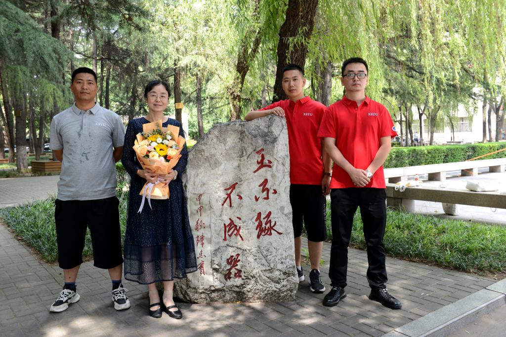 王進富向5名校友代表贈送了精心準(zhǔn)備的“一滴油”印章紀(jì)念品,以此表達對他們長期支持學(xué)校的感激之情。