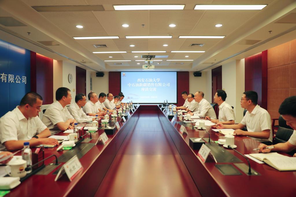 在中國(guó)石油新疆銷(xiāo)售有限公司走訪(fǎng)交流期間,公司黨委副書(shū)記、總經(jīng)理黃劍宇等企業(yè)領(lǐng)導(dǎo)會(huì)見(jiàn)常江、王進(jìn)富一行,并進(jìn)行工作座談。黃劍宇感謝學(xué)校在長(zhǎng)期的合作過(guò)程中,為公司提供了重要的人才、科技支撐。他表示,下一步將圍繞科研攻關(guān)、創(chuàng)新人才培養(yǎng)、推進(jìn)智慧銷(xiāo)售構(gòu)建大營(yíng)銷(xiāo)體系、提升學(xué)歷教育培訓(xùn)等方面,進(jìn)一步增加合作力度、拓展合作廣度、加大合作深度,共同實(shí)現(xiàn)高質(zhì)量發(fā)展。