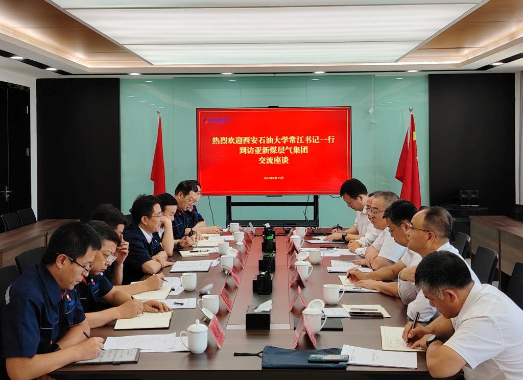 在新疆亞新煤層氣集團(tuán)走訪(fǎng)期間,集團(tuán)黨委書(shū)記、董事長(zhǎng)崔玉淼熱情接待了常江、王進(jìn)富一行。崔玉淼熱烈歡迎學(xué)校領(lǐng)導(dǎo)半年內(nèi)的再次正式來(lái)訪(fǎng),對(duì)學(xué)校高度重視與亞新煤層氣開(kāi)展校企合作表示高度贊賞和衷心感謝。在座談會(huì)上,雙方圍繞前期在天然氣、煤層氣“雙氣共采”技術(shù)、煤炭地下氣化、導(dǎo)向鉆井工具、壓裂改造技術(shù)、區(qū)域地質(zhì)構(gòu)圖等多個(gè)合作領(lǐng)域的項(xiàng)目進(jìn)展情況進(jìn)行交流和探討,并就雙方共建勘探開(kāi)發(fā)協(xié)同創(chuàng)新研究院,在基礎(chǔ)理論和關(guān)鍵技術(shù)共同研究、共建企校合作團(tuán)隊(duì)、聯(lián)合開(kāi)展重大項(xiàng)目論證、聯(lián)合攻關(guān)重大技術(shù)難題、研發(fā)重大裝備、教師“沉浸式”入企、企業(yè)導(dǎo)師聘任等領(lǐng)域開(kāi)展實(shí)質(zhì)性合作交換了意見(jiàn)和建議。該集團(tuán)黨委委員、副總經(jīng)理韋波,總地質(zhì)師梁則亮,集團(tuán)特級(jí)專(zhuān)家王一兵等企業(yè)領(lǐng)導(dǎo)參加了座談交流。