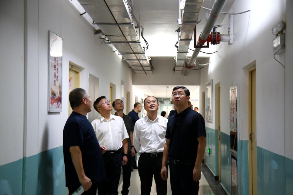 王進(jìn)富一行先后到西區(qū)12號學(xué)生宿舍樓、校醫(yī)院、綜合服務(wù)一條街、西區(qū)1號宿舍樓西側(cè)電動自行車棚、西區(qū)學(xué)生食堂和教工食堂、化學(xué)化工學(xué)院?;穾旆亢蛯嶒炇摇W(xué)校消防控制室,針對消防安全、食品安全、醫(yī)療衛(wèi)生、綜合服務(wù)保障等專項工作進(jìn)行了檢查,聽取了有關(guān)負(fù)責(zé)同志的現(xiàn)場匯報,對于檢查中發(fā)現(xiàn)的問題及隱患現(xiàn)場協(xié)調(diào)督辦。他在檢查中談到,校園安全穩(wěn)定是開展一切教育教學(xué)工作的基礎(chǔ),全校各單位務(wù)必要高度重視,堅持問題導(dǎo)向,緊盯重點和薄弱環(huán)節(jié),努力為廣大師生營造一個安全、穩(wěn)定、和諧的校園氛圍。
