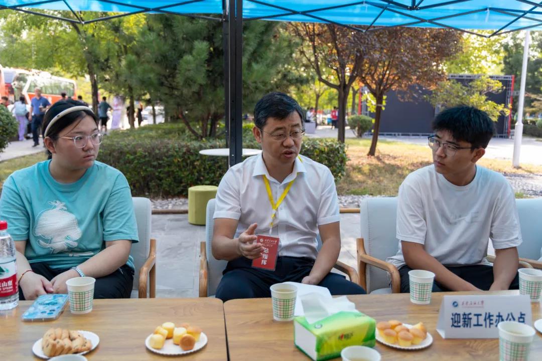 王進富與拔尖人才學生代表在迎新現(xiàn)場進行交流座談,他對同學們的到來表達了誠摯的歡迎,并親切詢問了大家的生源信息、所學專業(yè)和對未來的規(guī)劃,同時鼓勵同學們砥礪求知,學有所成。
