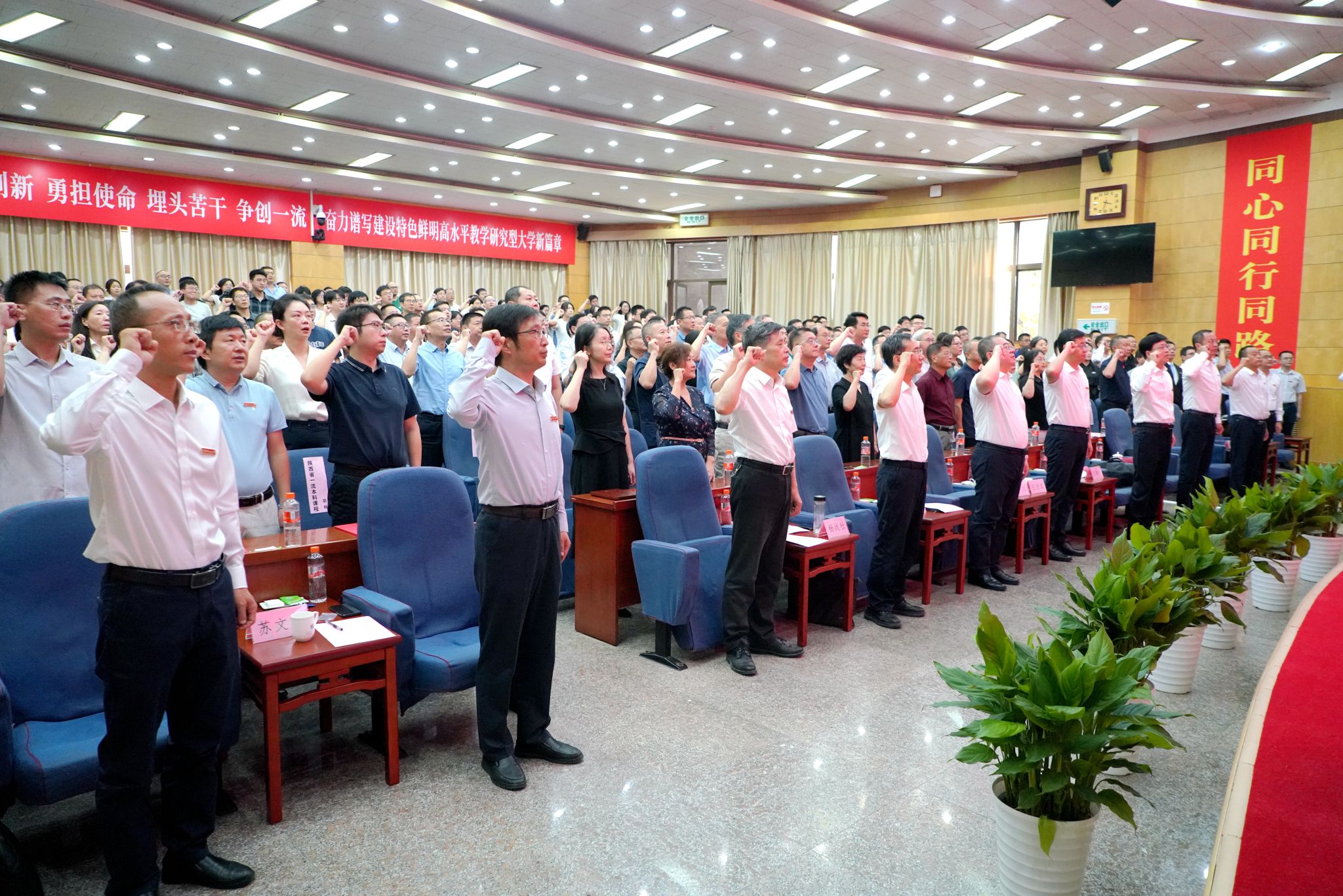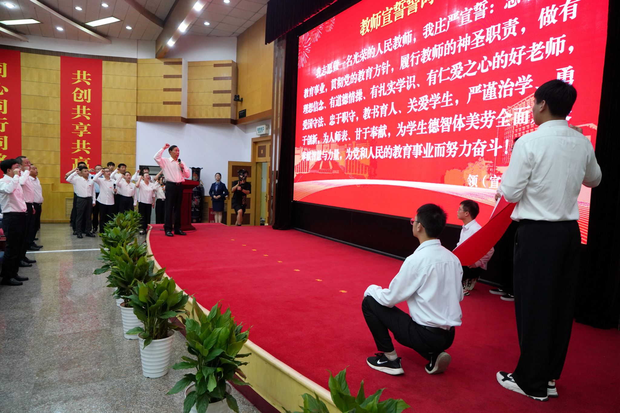 立德樹(shù)人育桃李,櫛風(fēng)沐雨做園丁。在教師宣誓儀式上,全體參會(huì)人員集體宣誓,表達(dá)努力成為“四有好老師”,為學(xué)生德智體美勞全面發(fā)展奉獻(xiàn)智慧與力量、為黨和人民的教育事業(yè)而努力奮斗的決心。