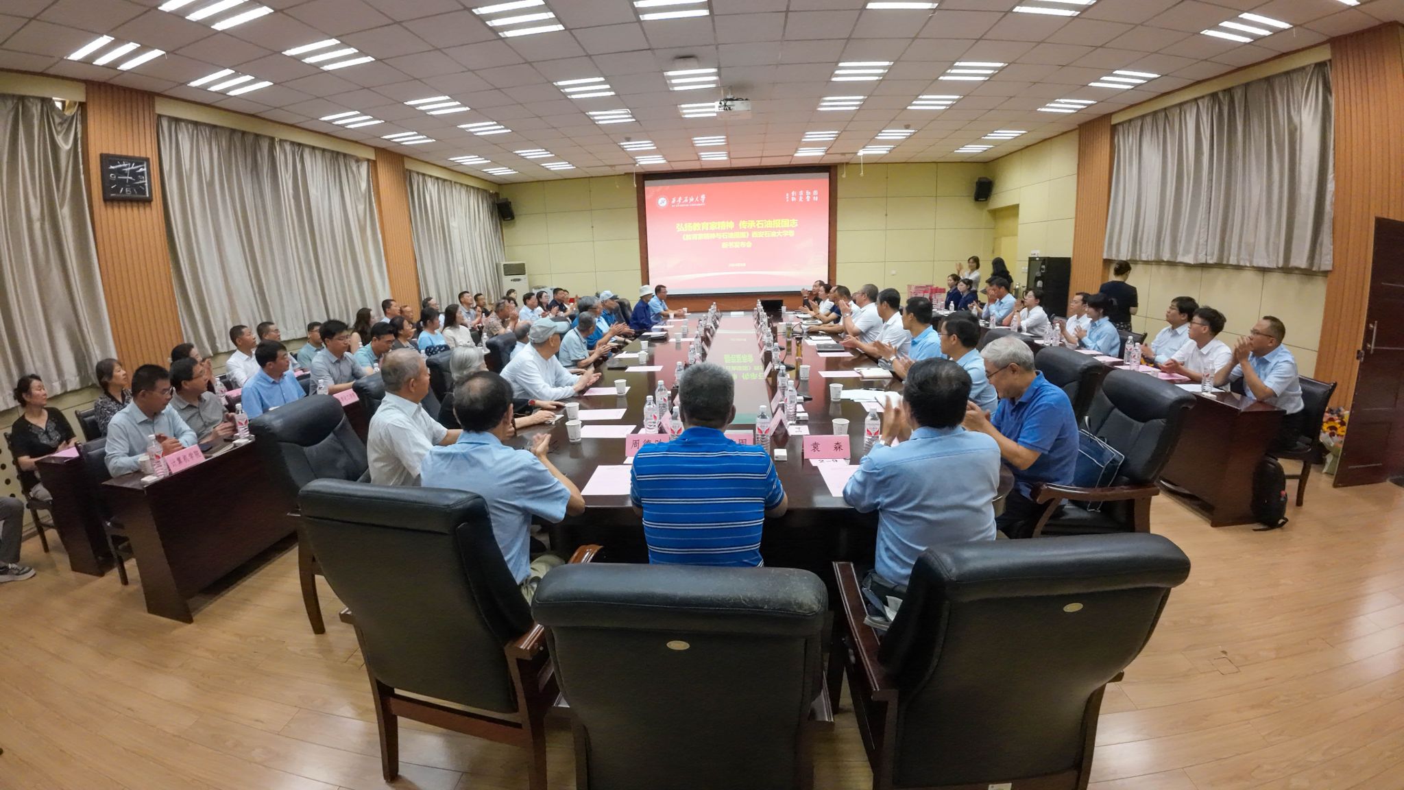 9月10日上午,學(xué)校在雁塔校區(qū)第一會議室舉辦《教育家精神與石油報國》叢書西安石油大學(xué)卷新書發(fā)布會。校黨委書記常江、校長王進(jìn)富出席發(fā)布會。入選叢書的教師及其親屬代表,青年教師代表等50余人參加發(fā)布會。發(fā)布會由校黨委副書記程永清主持。