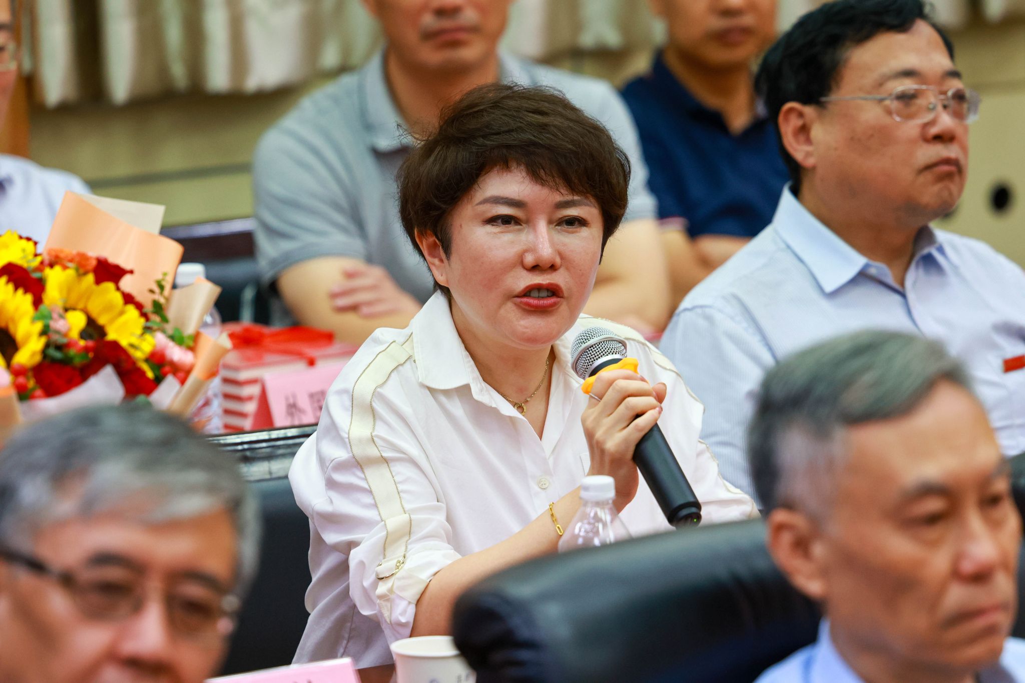青年教師代表向入選叢書的教師及其親屬獻(xiàn)花