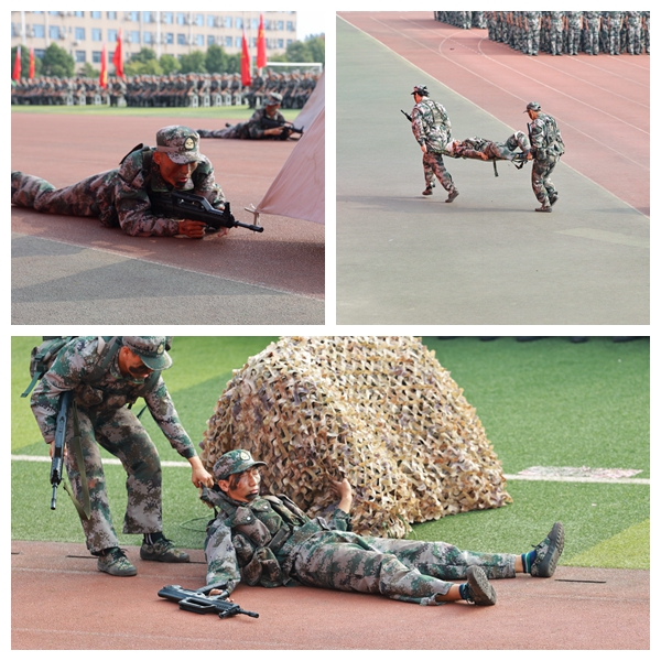 “實(shí)戰(zhàn)運(yùn)用、隊(duì)列行進(jìn)、養(yǎng)成動作、格斗術(shù)、刺殺操”五個環(huán)節(jié)的軍訓(xùn)成果一一展示在大家面前。在整齊的動作和嘹亮的口號中,同學(xué)們用昂揚(yáng)向上的姿態(tài)展示了14天的軍訓(xùn)訓(xùn)練成果,展現(xiàn)西石大學(xué)子自強(qiáng)自信、團(tuán)結(jié)拼搏的精神風(fēng)貌。
