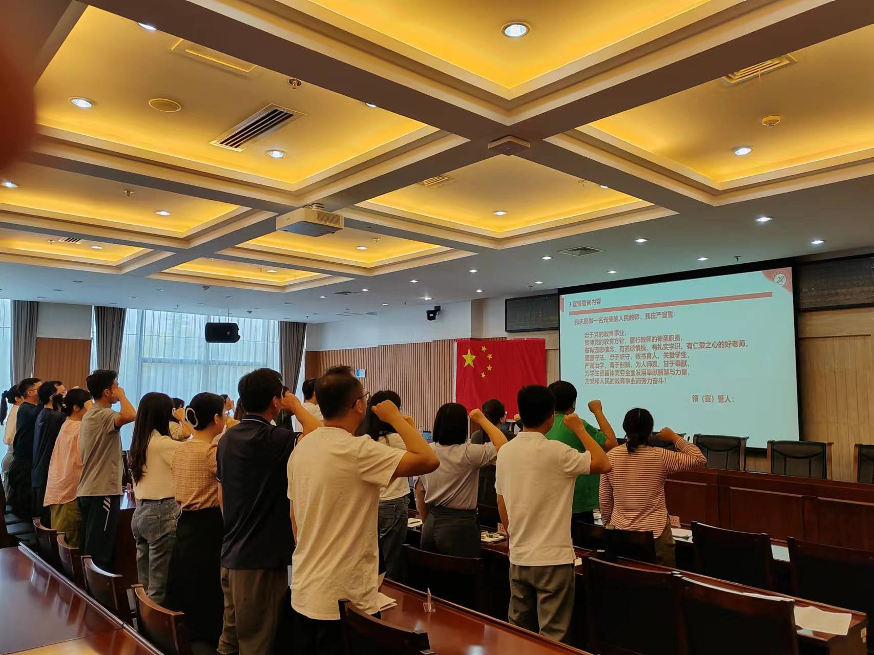 講座開始前,教師工作部組織新入職教師參觀了校史館和鐵人王進喜紀(jì)念館,舉行了教師宣誓活動。