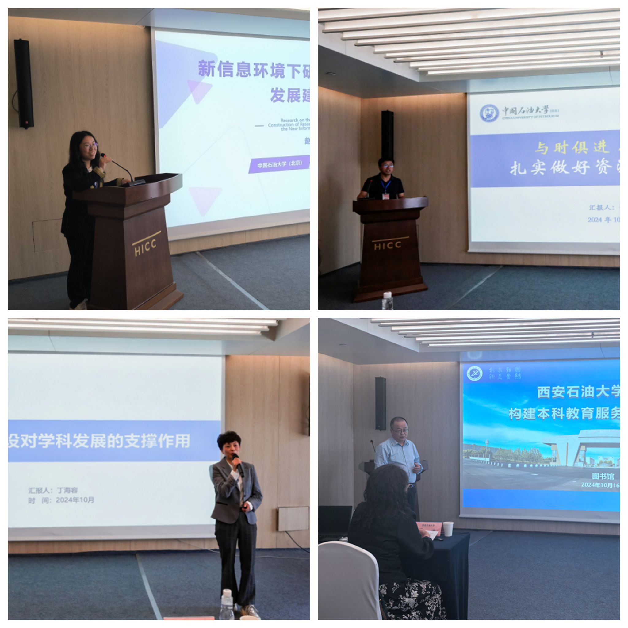 中國石油大學(xué)(北京)圖書館副研究館員趙天姿、中國石油大學(xué)(華東)圖書館資源建設(shè)部主任張雪松、成都理工大學(xué)圖書館副館長丁海容、我校圖書館副研究館員史啟明,分別以“新信息環(huán)境下研究型大學(xué)圖書館發(fā)展建設(shè)研究”“與時(shí)俱進(jìn)順勢而為扎實(shí)做好資源建設(shè)工作”“文獻(xiàn)資源建設(shè)對(duì)學(xué)科發(fā)展的支撐作用”“新時(shí)代高校圖書館構(gòu)建本科教育教學(xué)服務(wù)體系的探索”為題,作了精彩的學(xué)術(shù)報(bào)告。