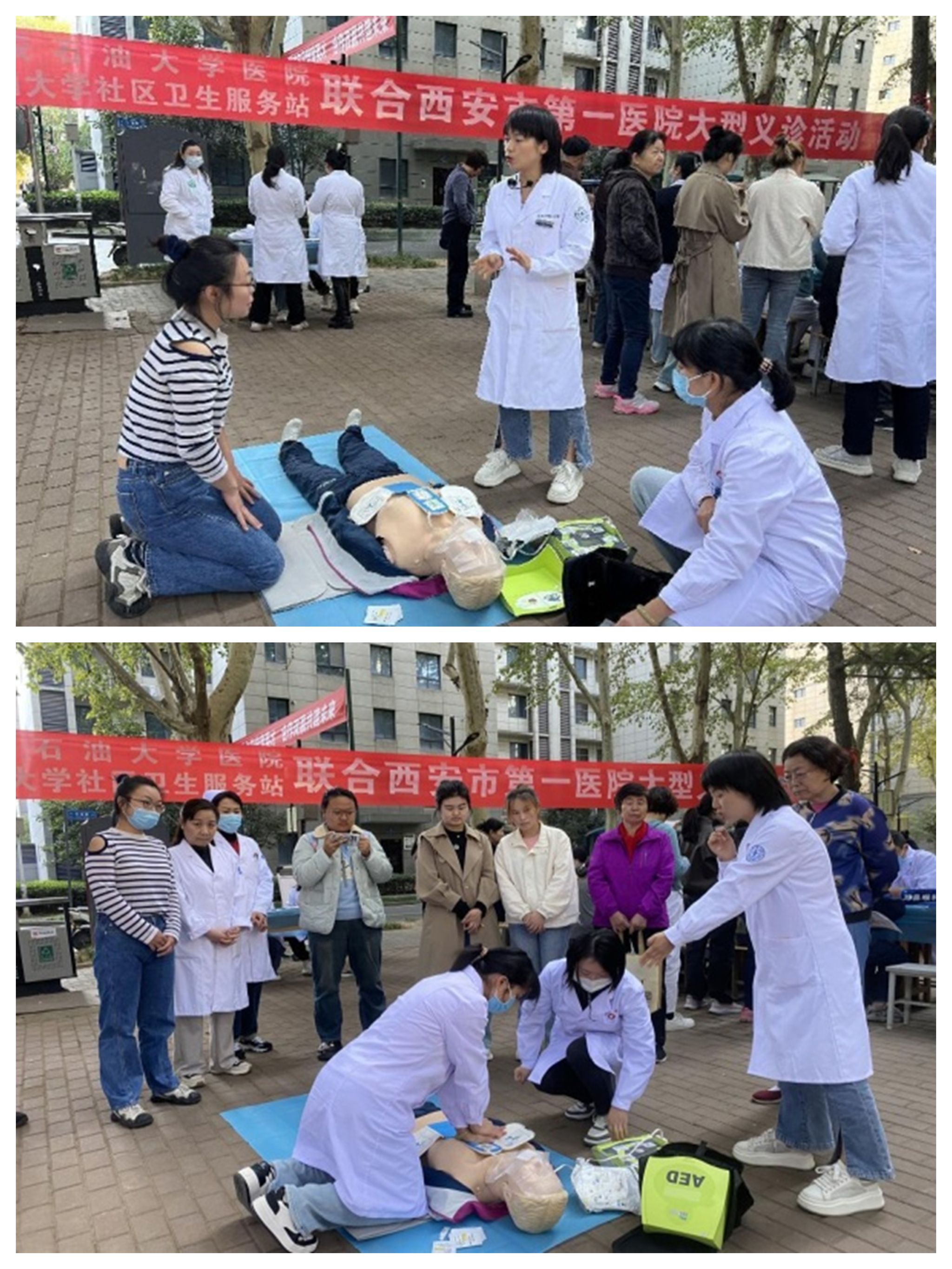 除了常規(guī)的診療服務(wù)外,義診現(xiàn)場還開展了急救知識技能培訓(xùn)和演練。經(jīng)驗豐富的醫(yī)生護士手把手教學(xué),向大家傳授心肺復(fù)蘇和海姆立克急救法的操作要領(lǐng),不僅增強了大家的急救意識,也進一步提高了緊急情況下的自救互救能力。