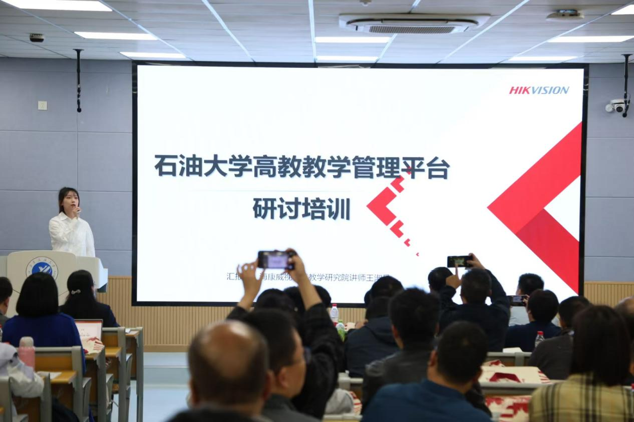 海康威視智慧教學(xué)研究院高級講師作了題為《高校教學(xué)管理平臺及信息化教學(xué)設(shè)備深度研討》的培訓(xùn),他通過理論講解與操作演示相結(jié)合的方式,介紹了學(xué)校教學(xué)管理平臺軟硬件的基本功能、操作技巧、應(yīng)用方法、故障排查等。