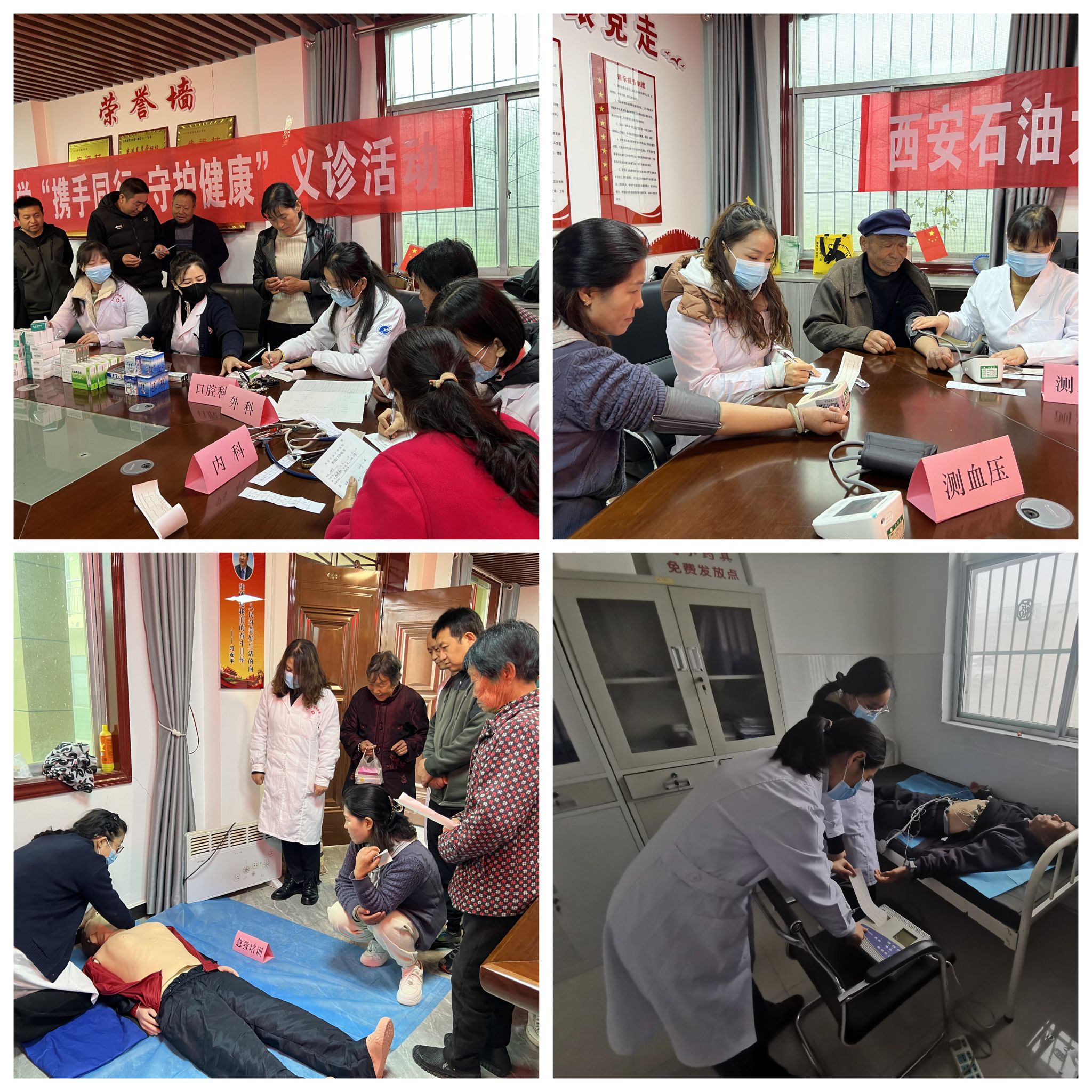 義診活動(dòng)現(xiàn)場,醫(yī)務(wù)人員熱情地接待前來看病或咨詢的村民,詳細(xì)詢問病史,耐心細(xì)致地進(jìn)行血壓、血糖、心電圖、內(nèi)科、外科、口腔科等各項(xiàng)檢查,根據(jù)檢查情況有針對性地對村民進(jìn)行常見病、慢性病的疾病知識(shí)科普,解疑答惑,叮囑飲食和用藥注意事項(xiàng)。義診現(xiàn)場還開展了急救知識(shí)技能培訓(xùn),醫(yī)護(hù)人員手把手教學(xué),向村民傳授心肺復(fù)蘇和海姆立克急救法的基本操作要領(lǐng)。為了助力鄉(xiāng)村振興建設(shè),校醫(yī)院積極辦實(shí)事,解民憂,已持續(xù)多年下鄉(xiāng)開展義診活動(dòng),不僅有利于增強(qiáng)村民健康保健意識(shí),幫助其養(yǎng)成科學(xué)健康的生活方式,也進(jìn)一步提高了緊急情況下的自救互救能力。此次義診免費(fèi)發(fā)放藥品二十余種60余盒,發(fā)放宣傳資料100余份。