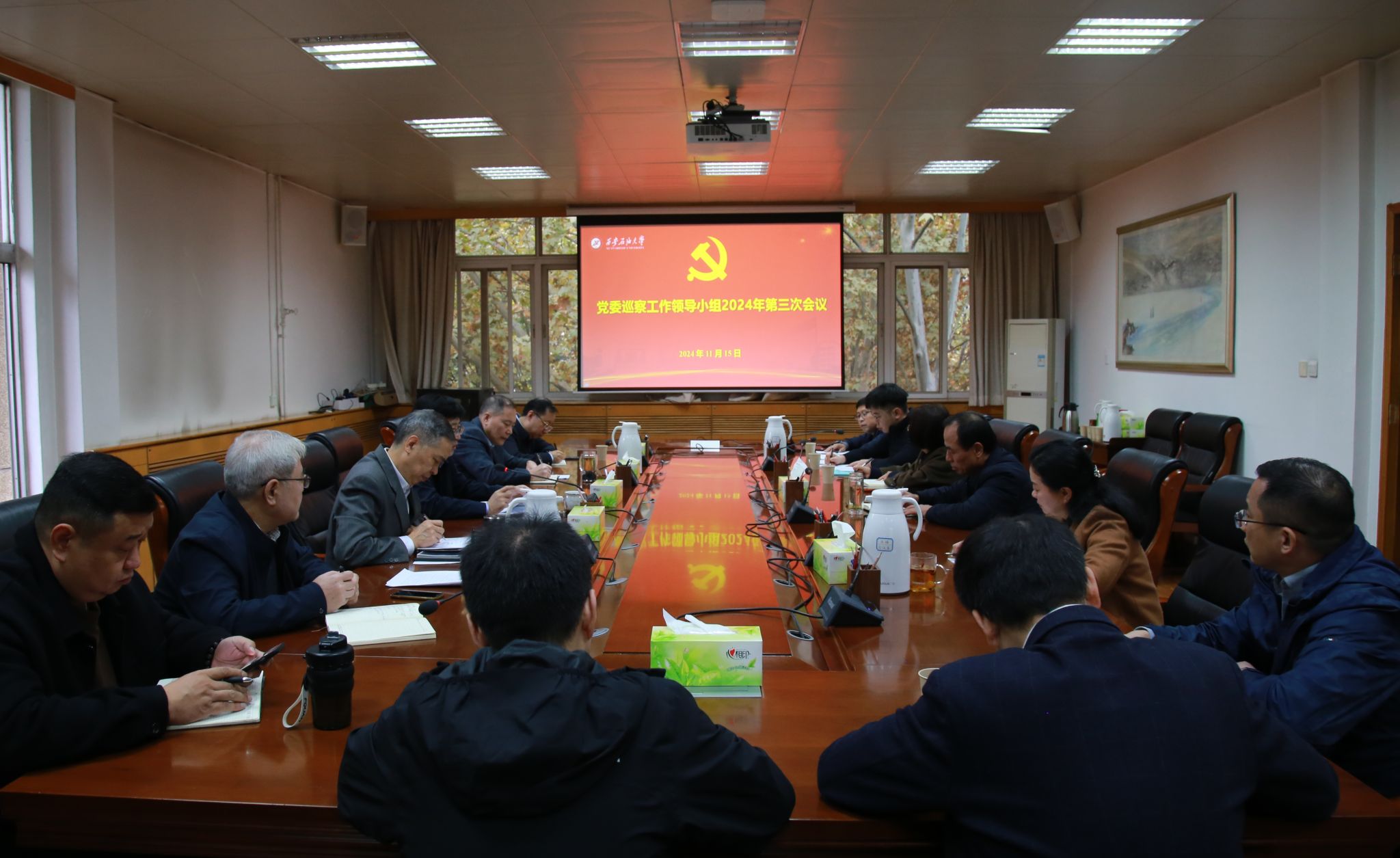 11月15日上午,學(xué)校在雁塔校區(qū)行政樓五樓會議室召開黨委巡察工作領(lǐng)導(dǎo)小組2024年第三次會議,聽取第三屆黨委第一輪巡察工作中期匯報,推進(jìn)巡察工作高質(zhì)量開展。校黨委副書記、紀(jì)委書記、監(jiān)察專員、黨委巡察工作領(lǐng)導(dǎo)小組副組長王輝強出席會議并講話。校黨委巡察工作領(lǐng)導(dǎo)小組成員單位主要負(fù)責(zé)人和第二巡察組全體成員參加會議。