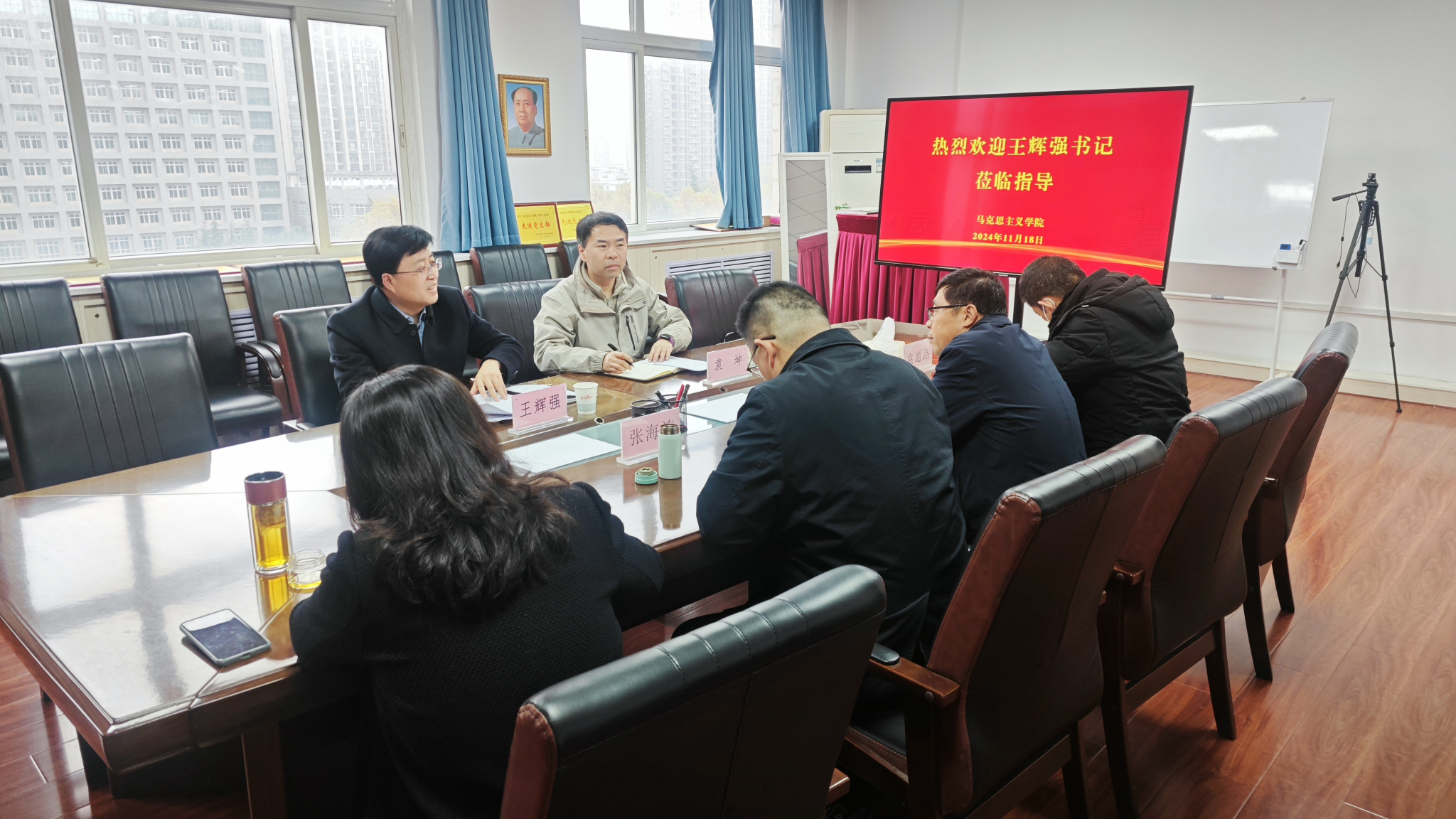 為推動(dòng)學(xué)習(xí)貫徹落實(shí)習(xí)近平總書記關(guān)于思政課建設(shè)的重要指示精神,11月18日下午,校黨委副書記、紀(jì)委書記、監(jiān)察專員王輝強(qiáng)一行到馬克思主義學(xué)院開展思政課建設(shè)專題調(diào)研監(jiān)督。馬克思主義學(xué)院班子成員和教師代表、紀(jì)委綜合室負(fù)責(zé)人參加調(diào)研監(jiān)督座談會(huì)。