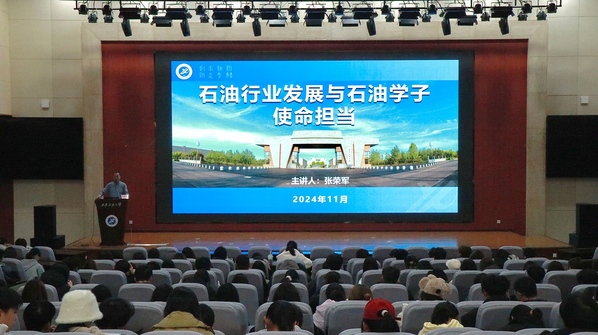 11月25日晚,副校長張榮軍在鄠邑校區(qū)弘石報(bào)告廳為人文學(xué)院學(xué)生講授題為“石油行業(yè)發(fā)展與石油學(xué)子使命擔(dān)當(dāng)”的專題思政課,人文學(xué)院學(xué)生工作干部、2024級全體本科生參加。