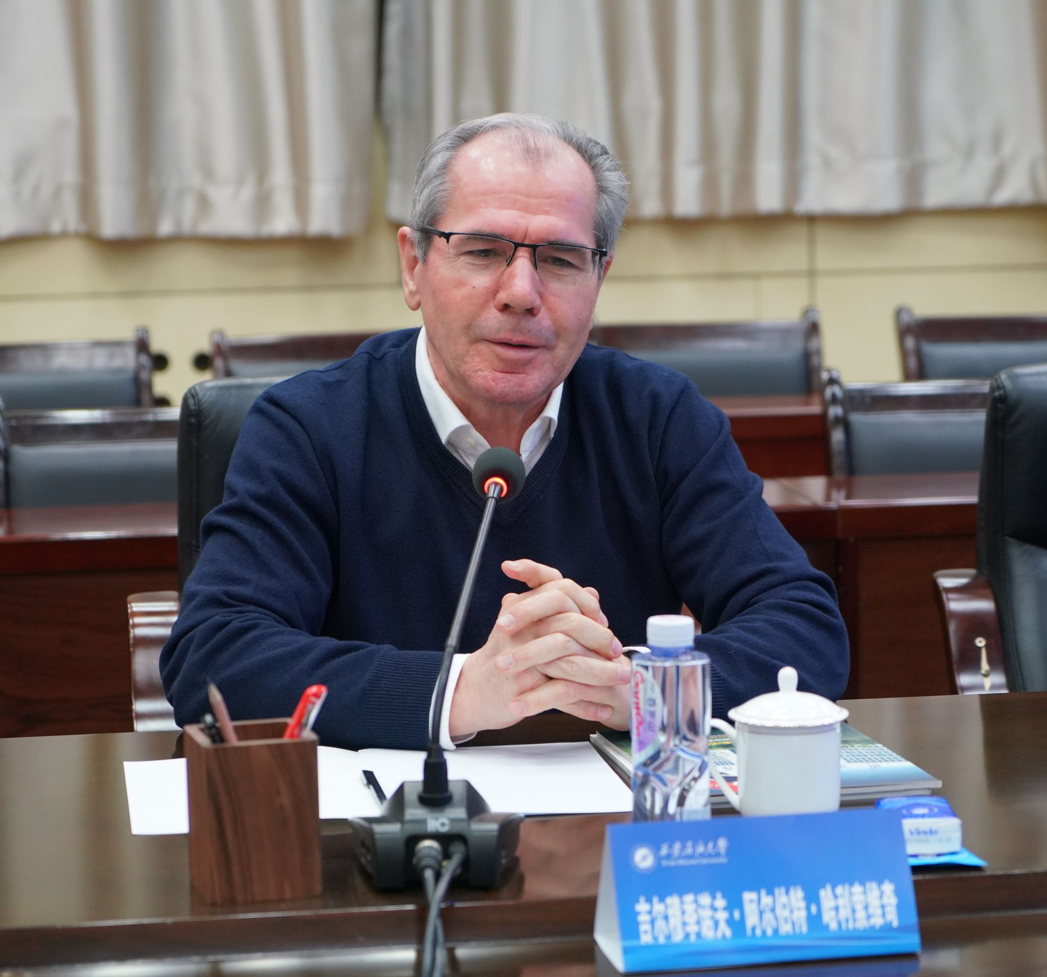 座談會(huì)上,王進(jìn)富對訪問團(tuán)一行表示熱烈歡迎,并簡要介紹了我校發(fā)展歷程、辦學(xué)特色及近年來國際化辦學(xué)成果。他表示我校當(dāng)前正大力實(shí)施“開放融合”行動(dòng),加快國際化辦學(xué)步伐,希望同俄羅斯韃靼斯坦共和國政府、高校、科研機(jī)構(gòu)等建立更加緊密聯(lián)系,深化在能源、石油化工等領(lǐng)域教育科技合作。